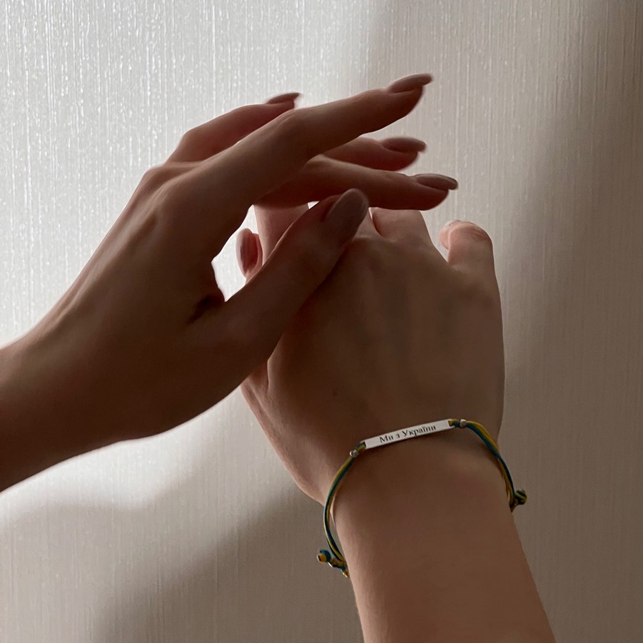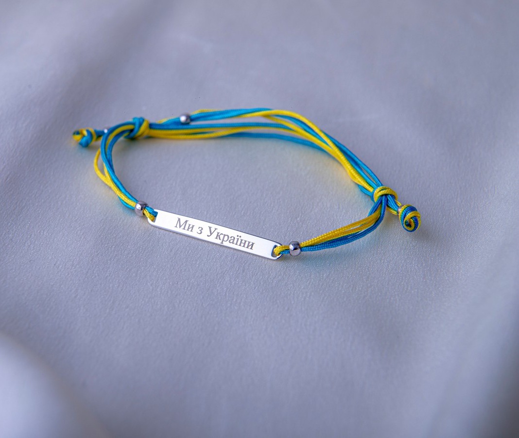 Браслет срібний з жовто-блакитною шамбалою Ми з України