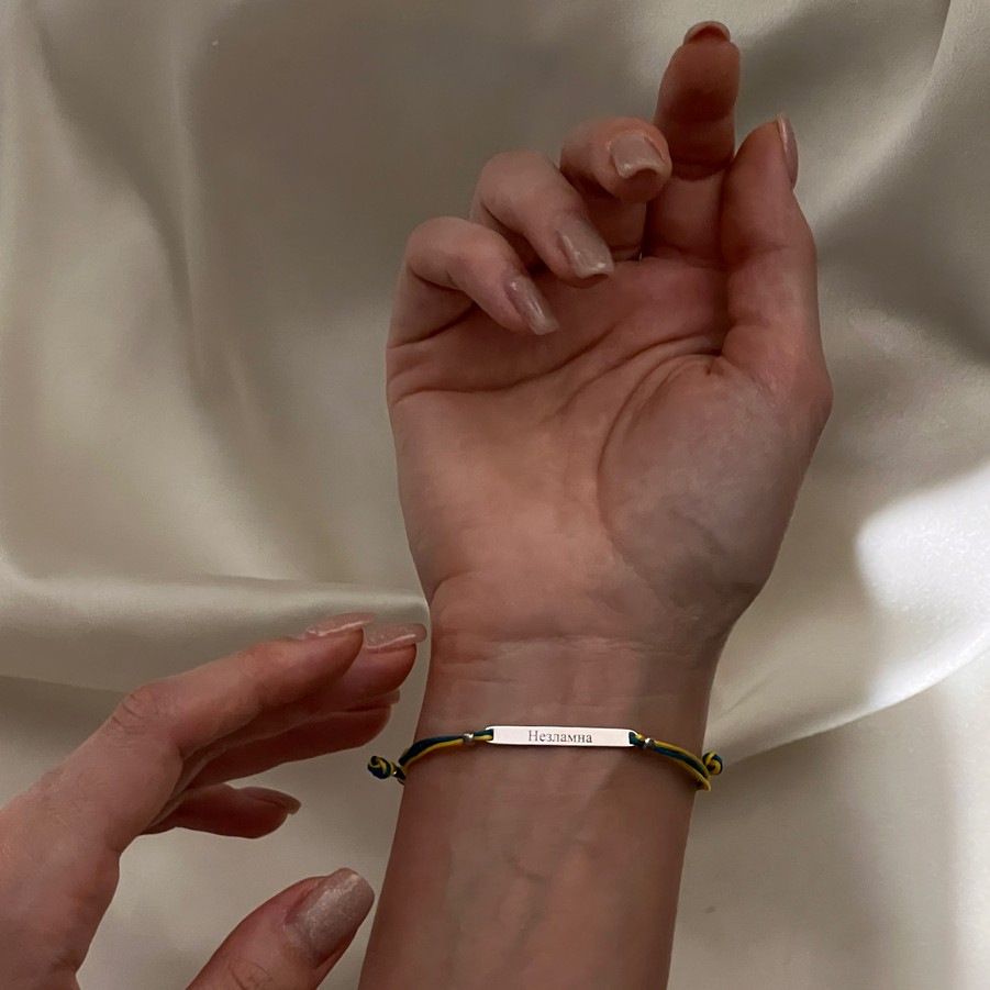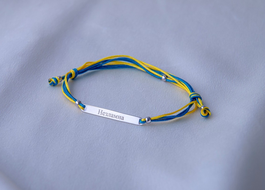 Браслет срібний з жовто-блакитною шамбалою Незламна