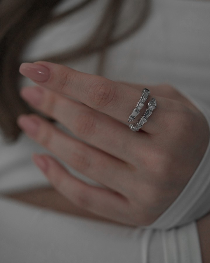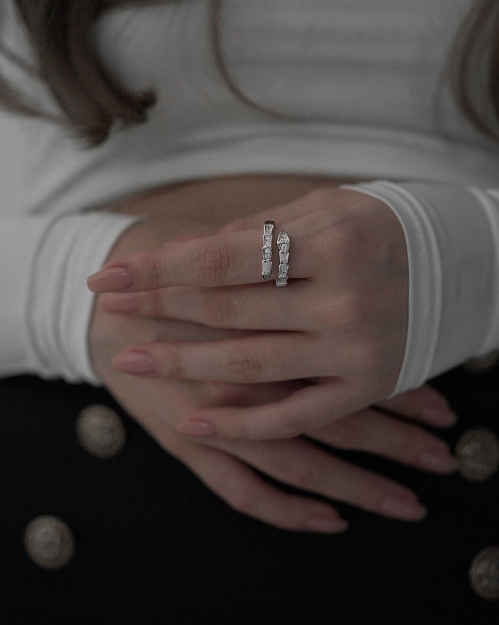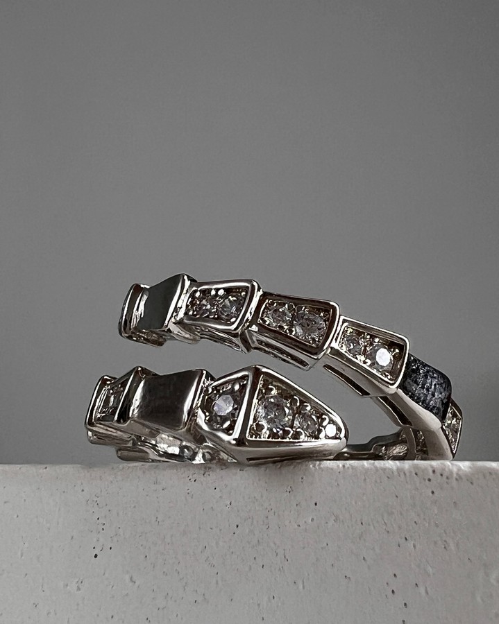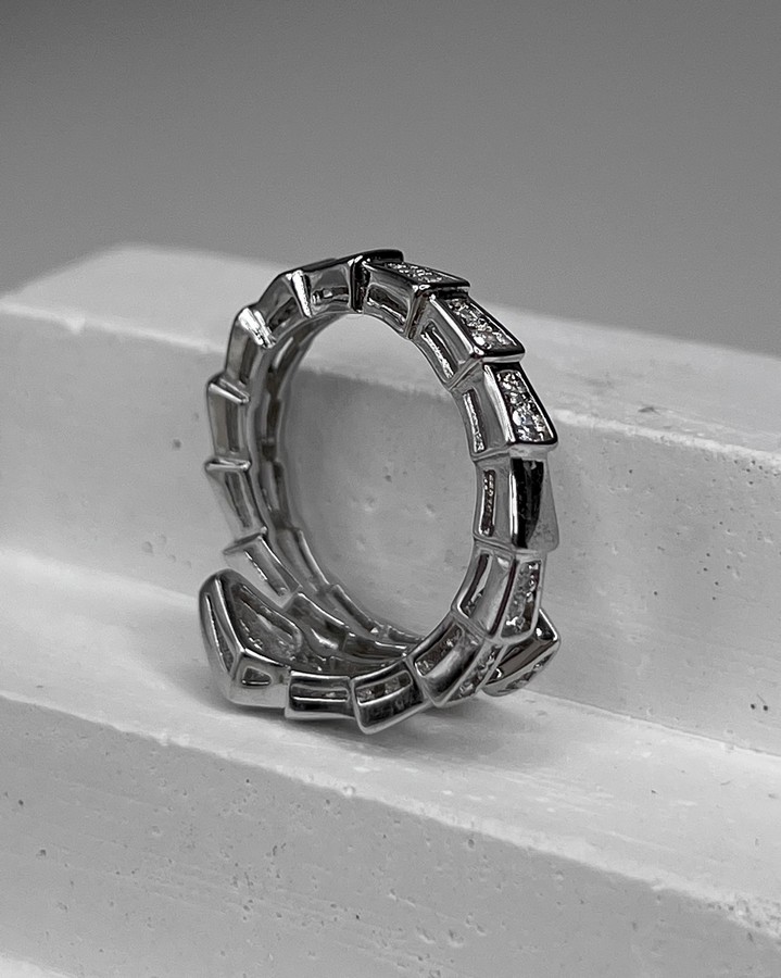 Каблучка срібна із цирконієм діамантового огранювання Змія 000561