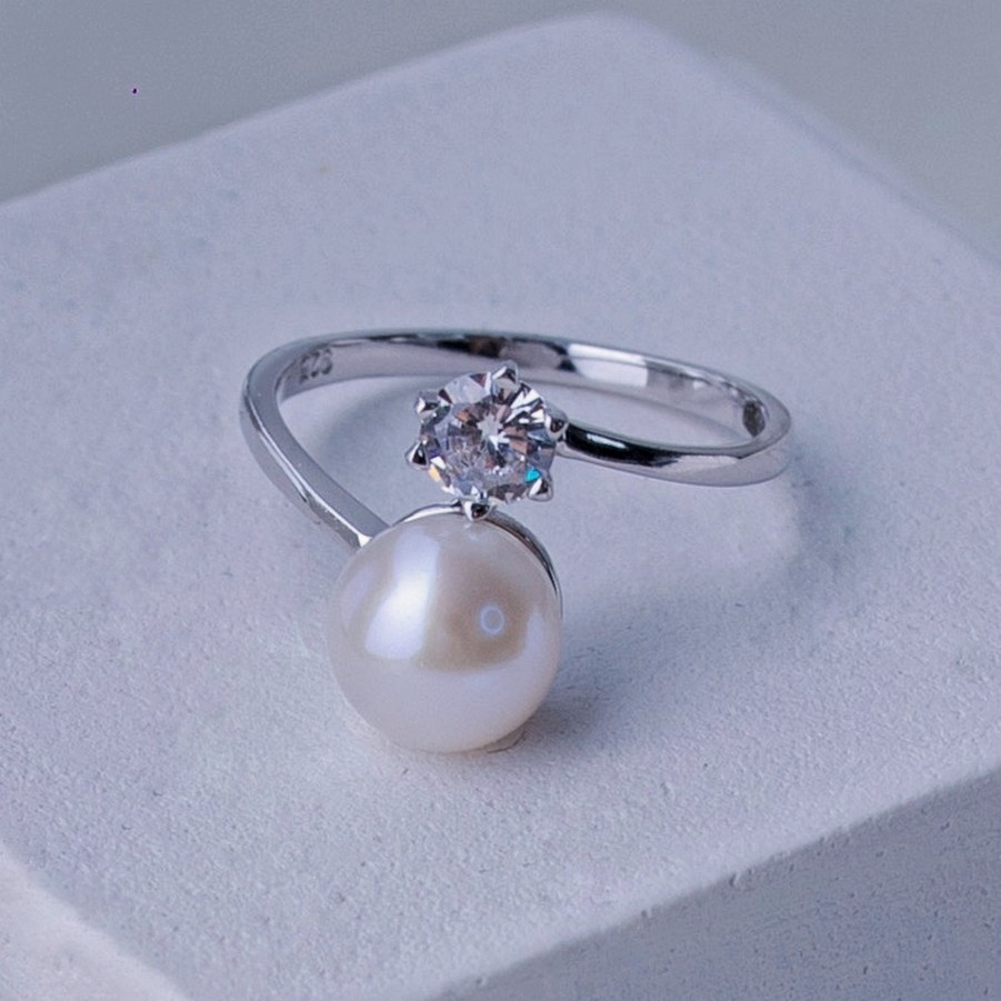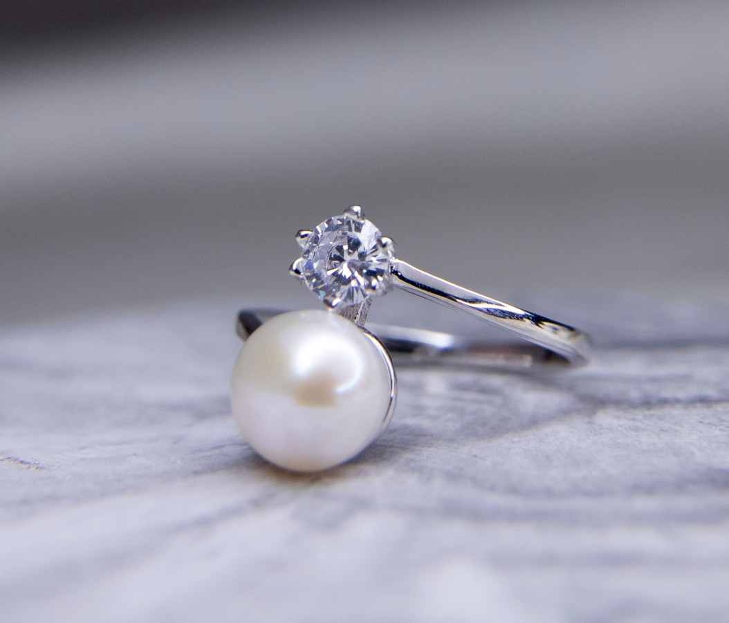 Каблучка срібна з перлиною та цирконієм діамантового огранювання
