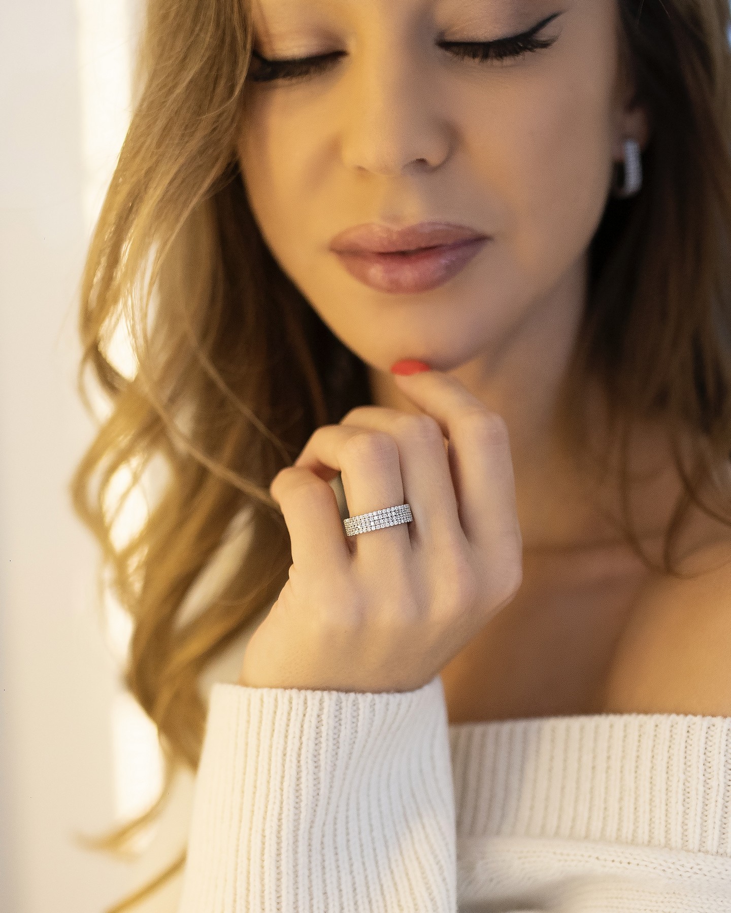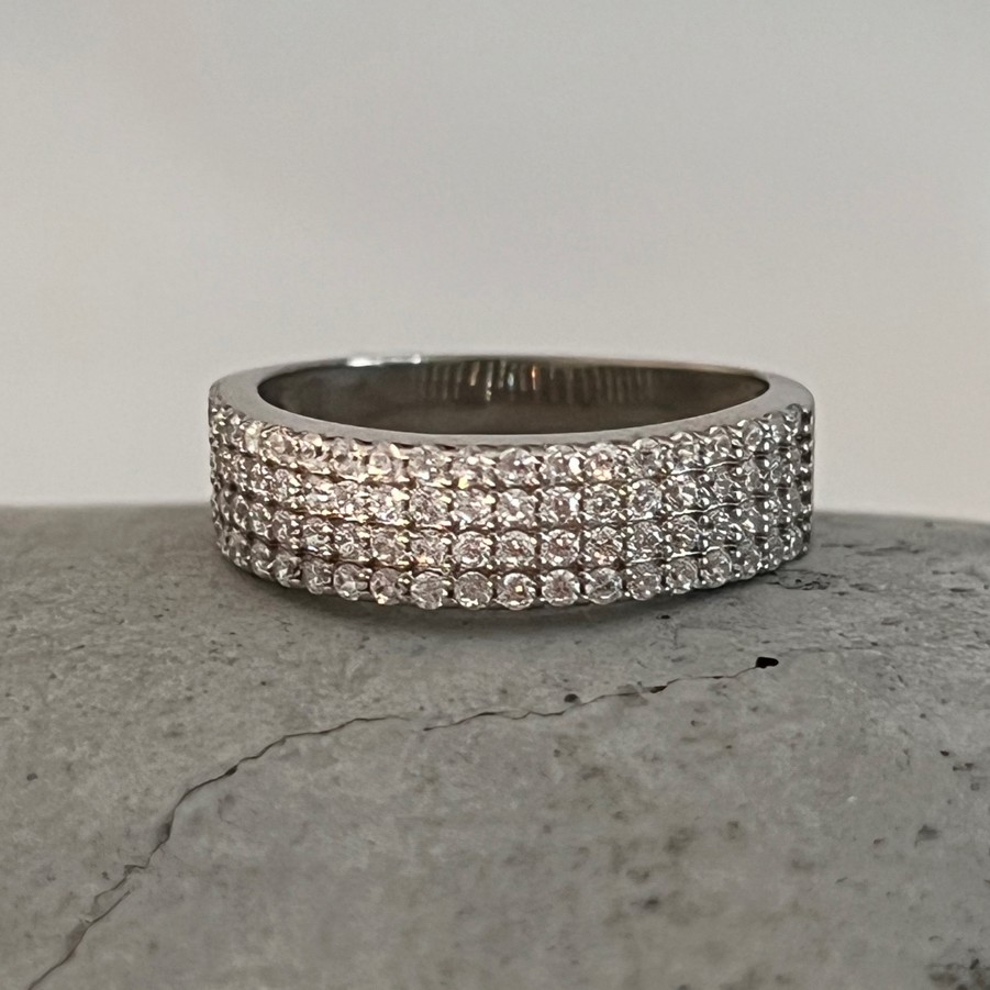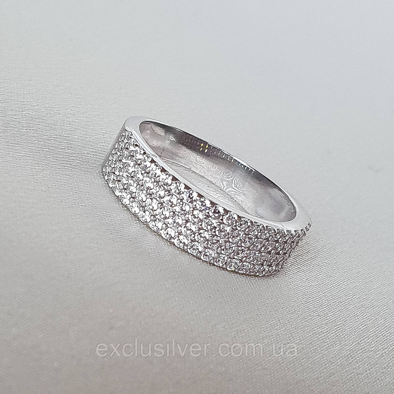 Каблучка срібна зверху інкрустована цирконієм діамантової огранки