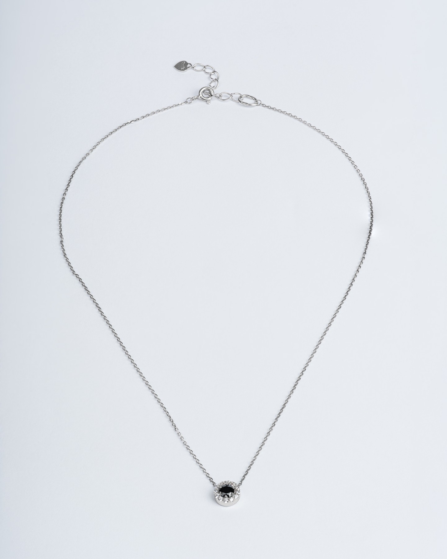 Срібне кольє з підвісом із чорного цирконію діамантової огранки і розсипом по колу 006613