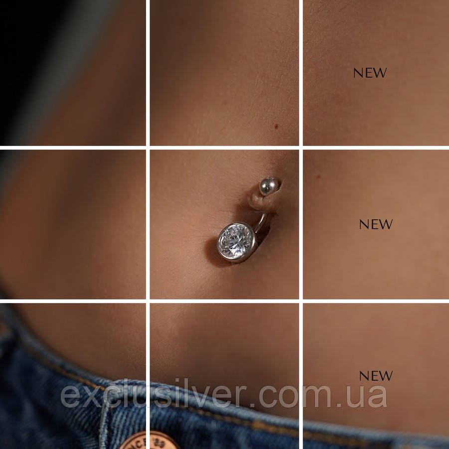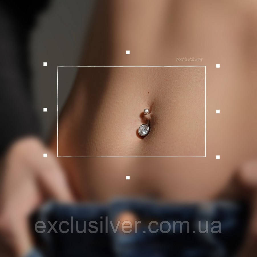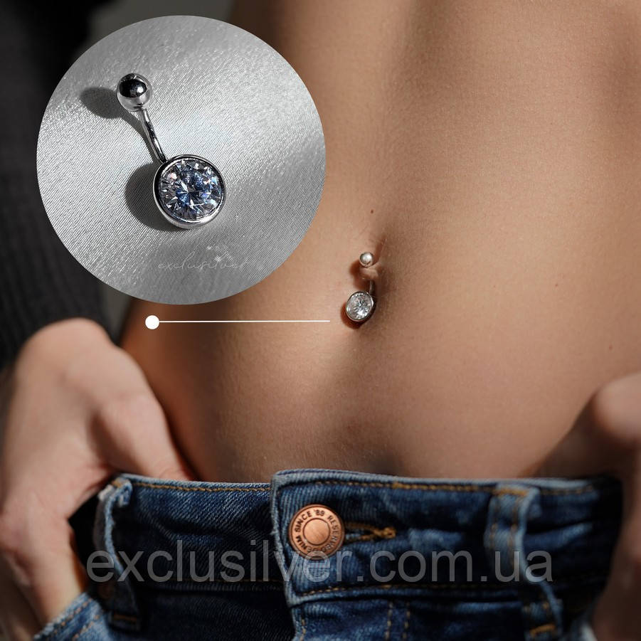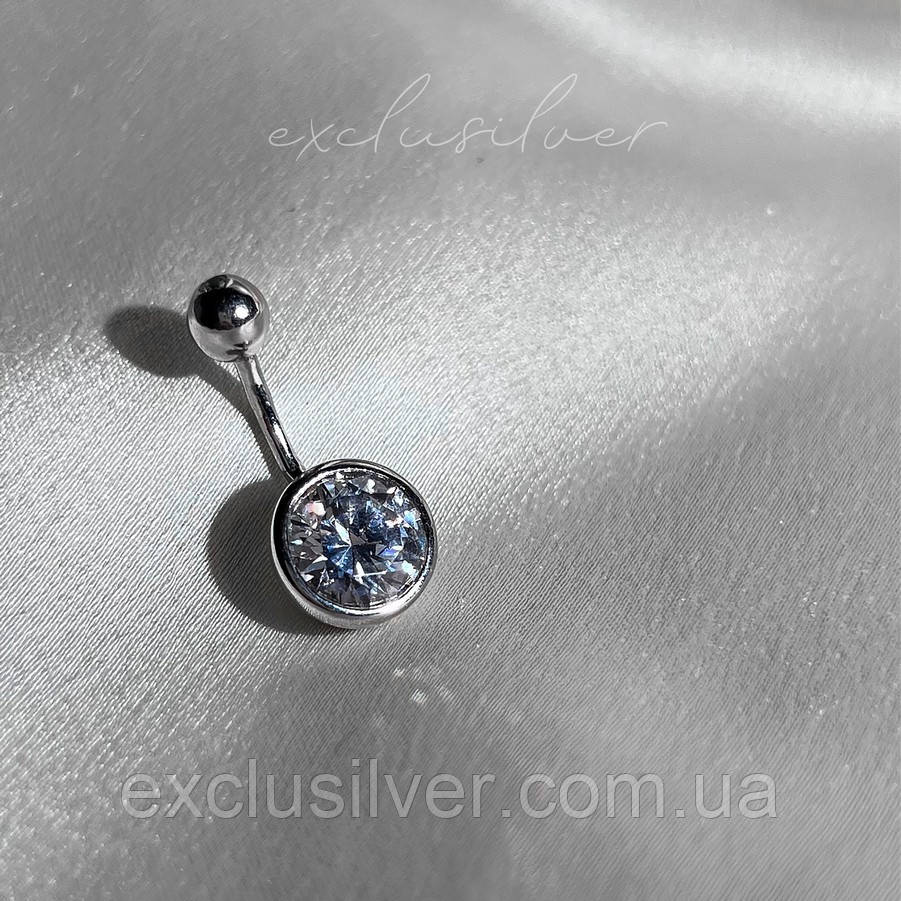 Пірсинг срібний в пупок з крупним цирконієм діамантового огранювання