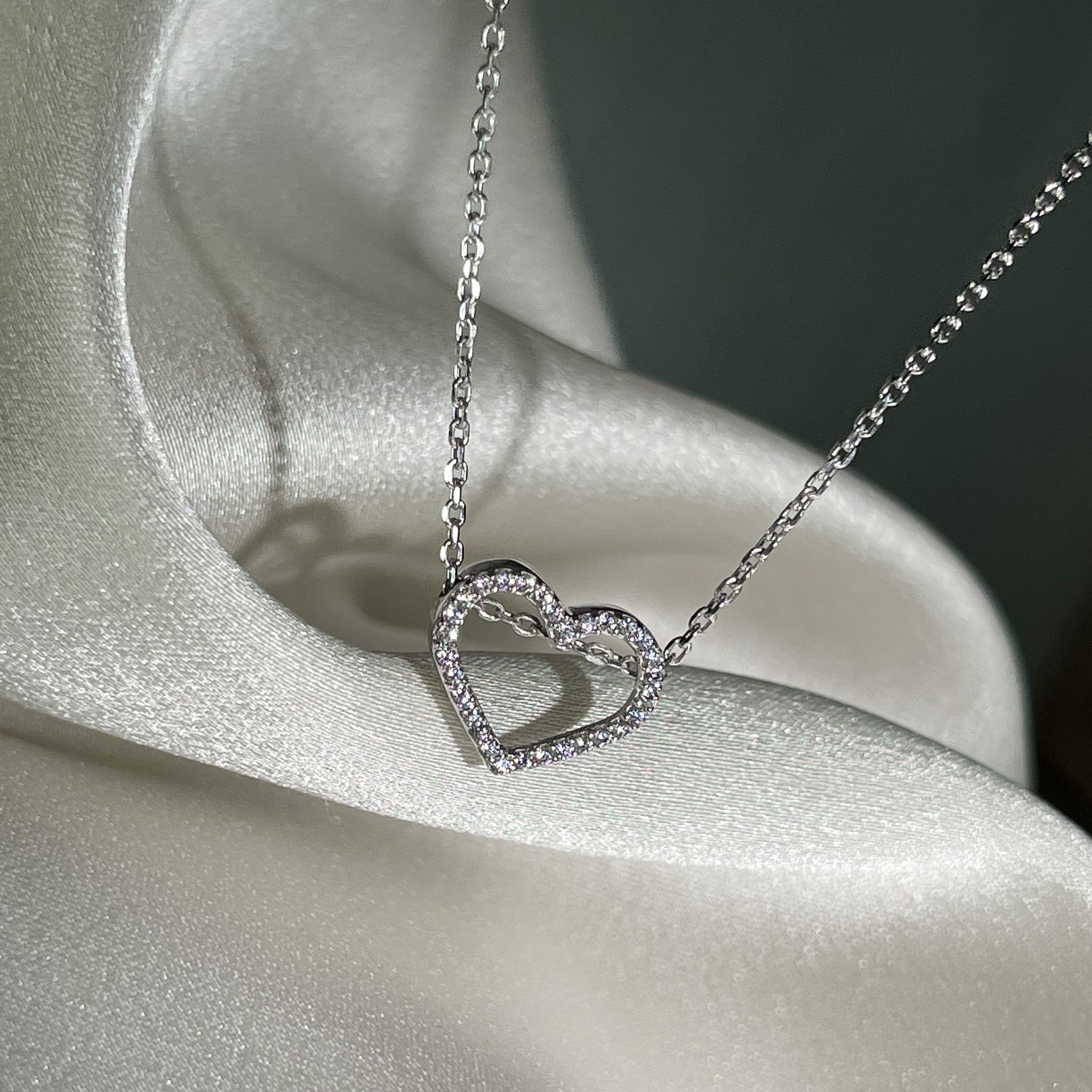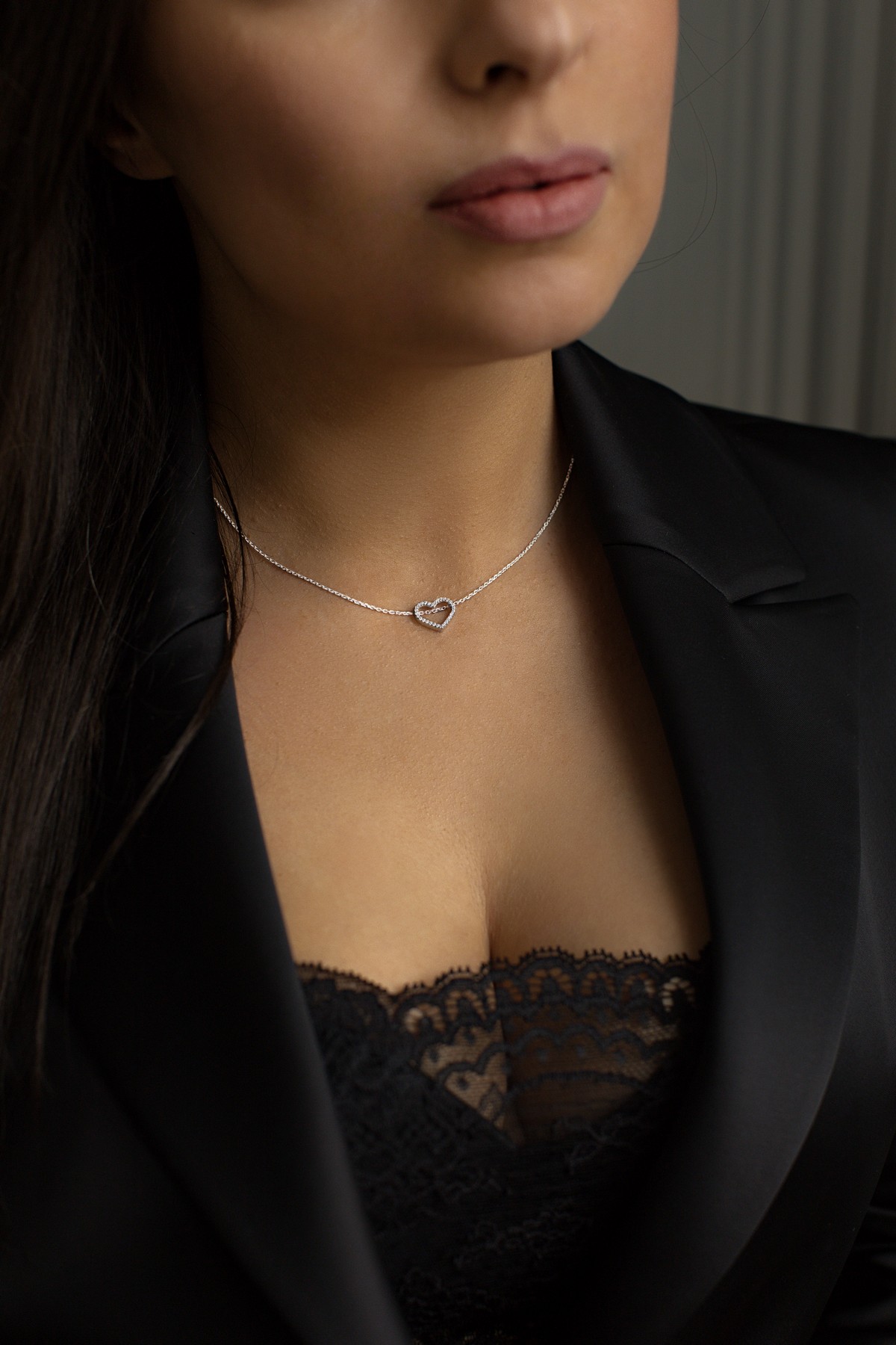 Підвіс Серце з цирконієм діамантової огранки на срібному ланцюжку