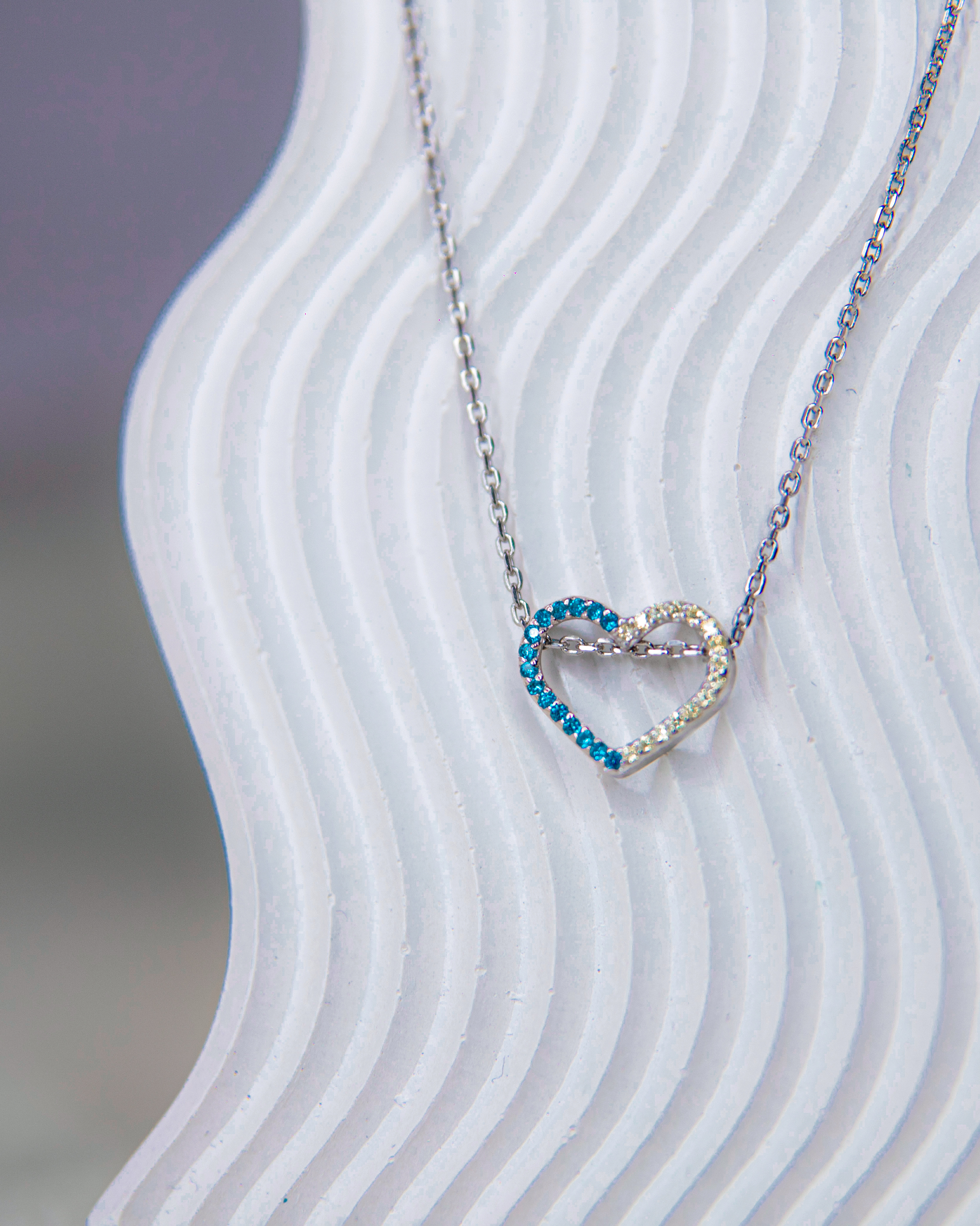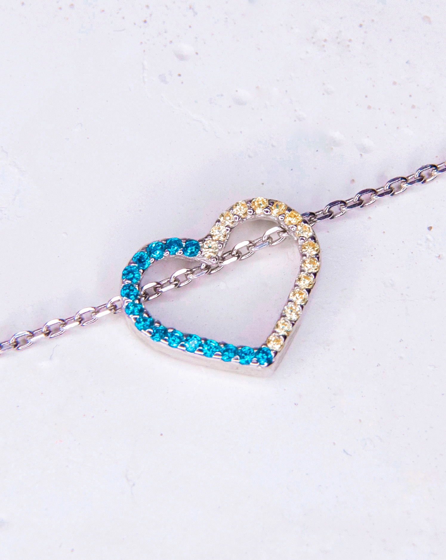 Підвіс Серце з жовто-блакитним цирконієм діамантової огранки на срібному ланцюжку