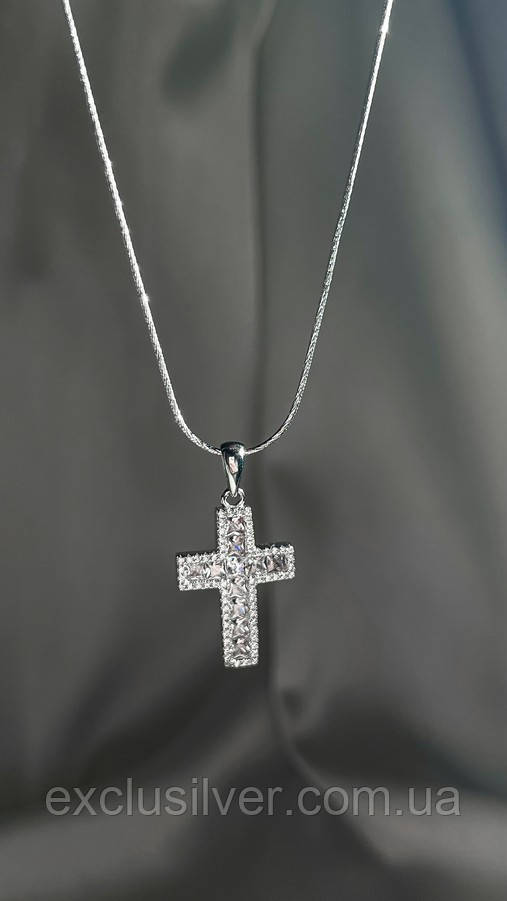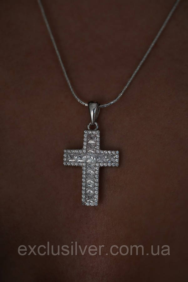 Підвіс срібний "Хрест" з цирконієм багетного та діамантового огранювання