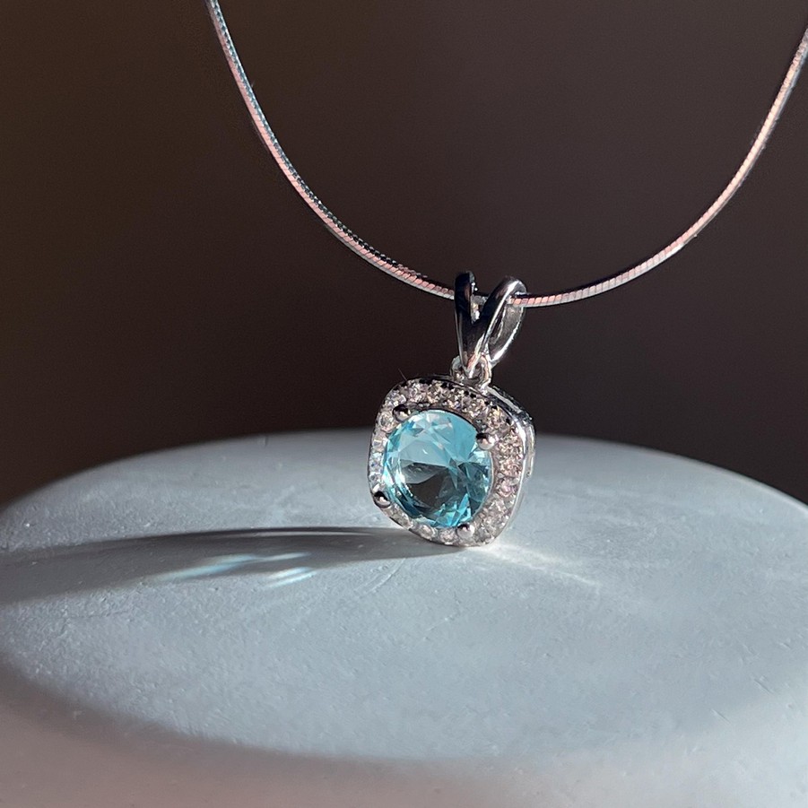 Підвіс срібний з блакитним та рожевим цирконієм діамантового огранювання