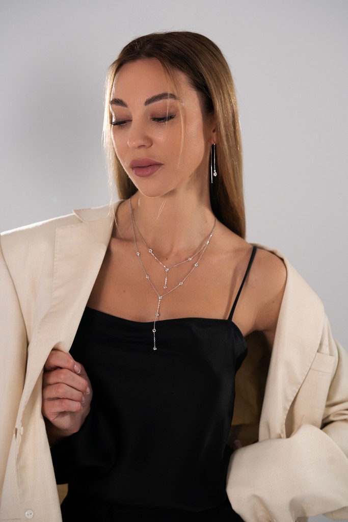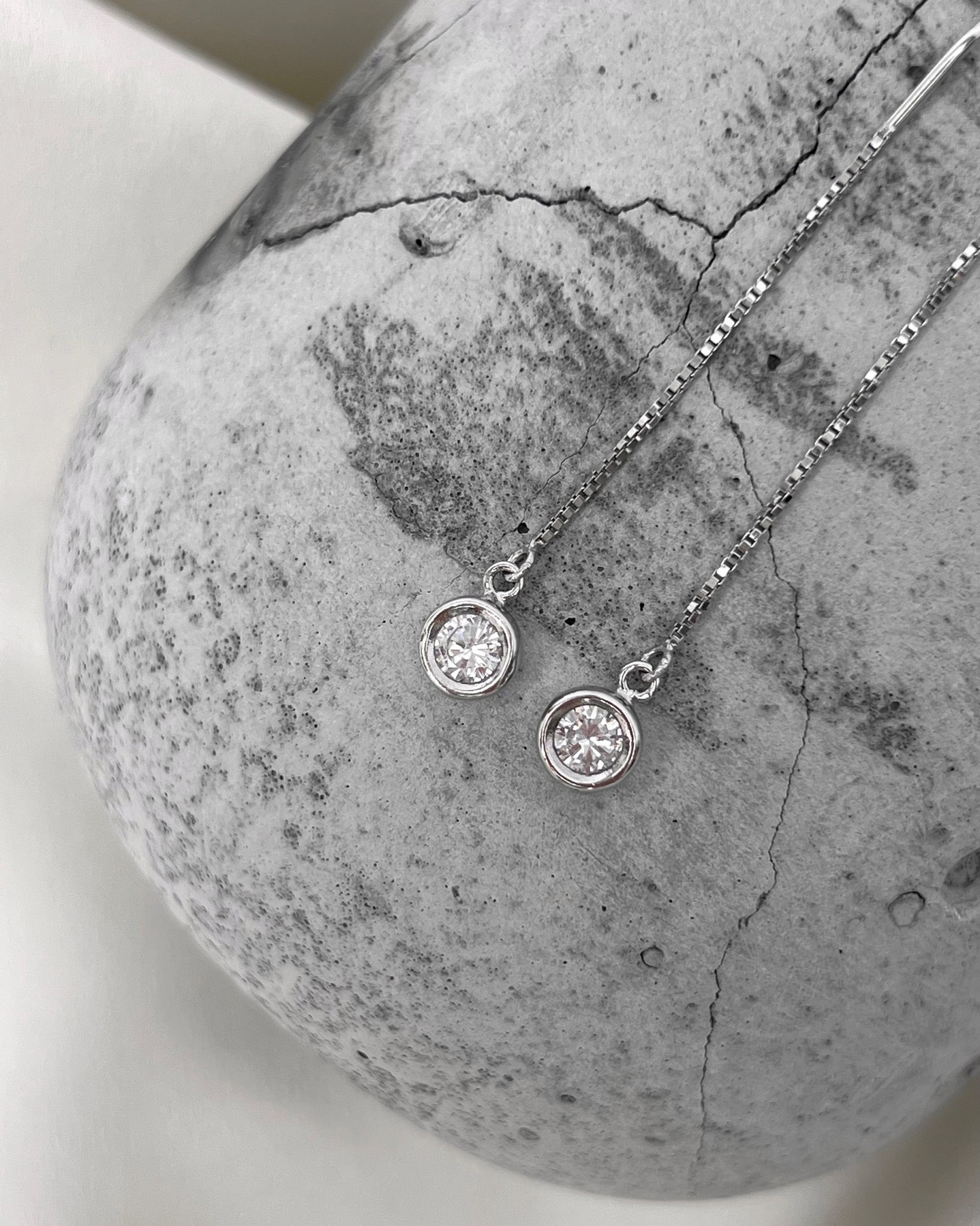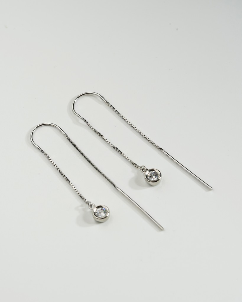 Серебряные сережки-протяжки с цирконием бриллиантовой огранки 003645