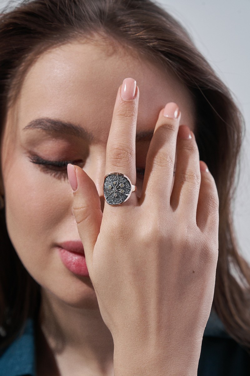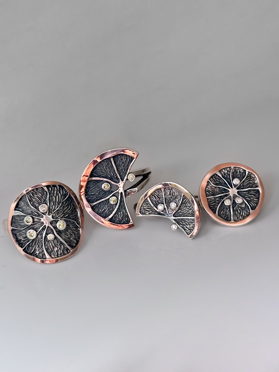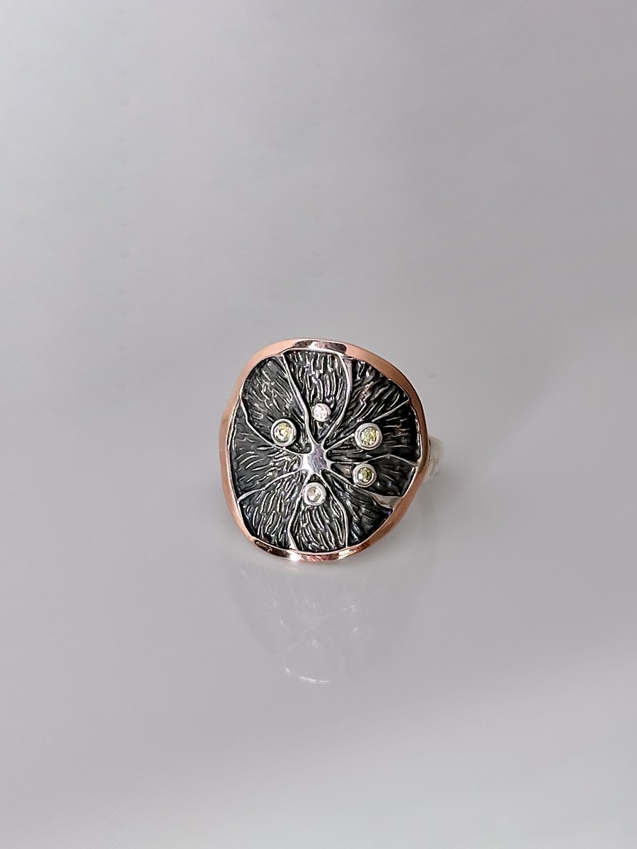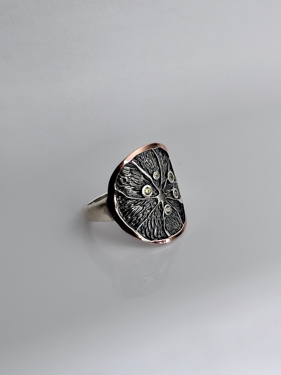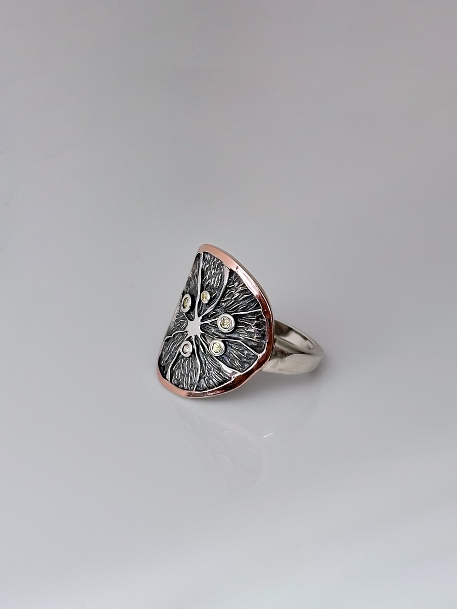 Кольцо серебряное с золотой пластиной Лимон 006624