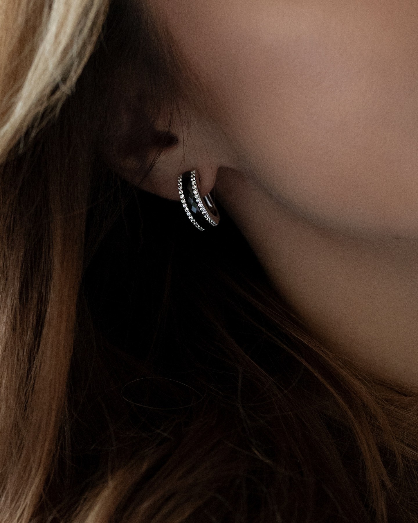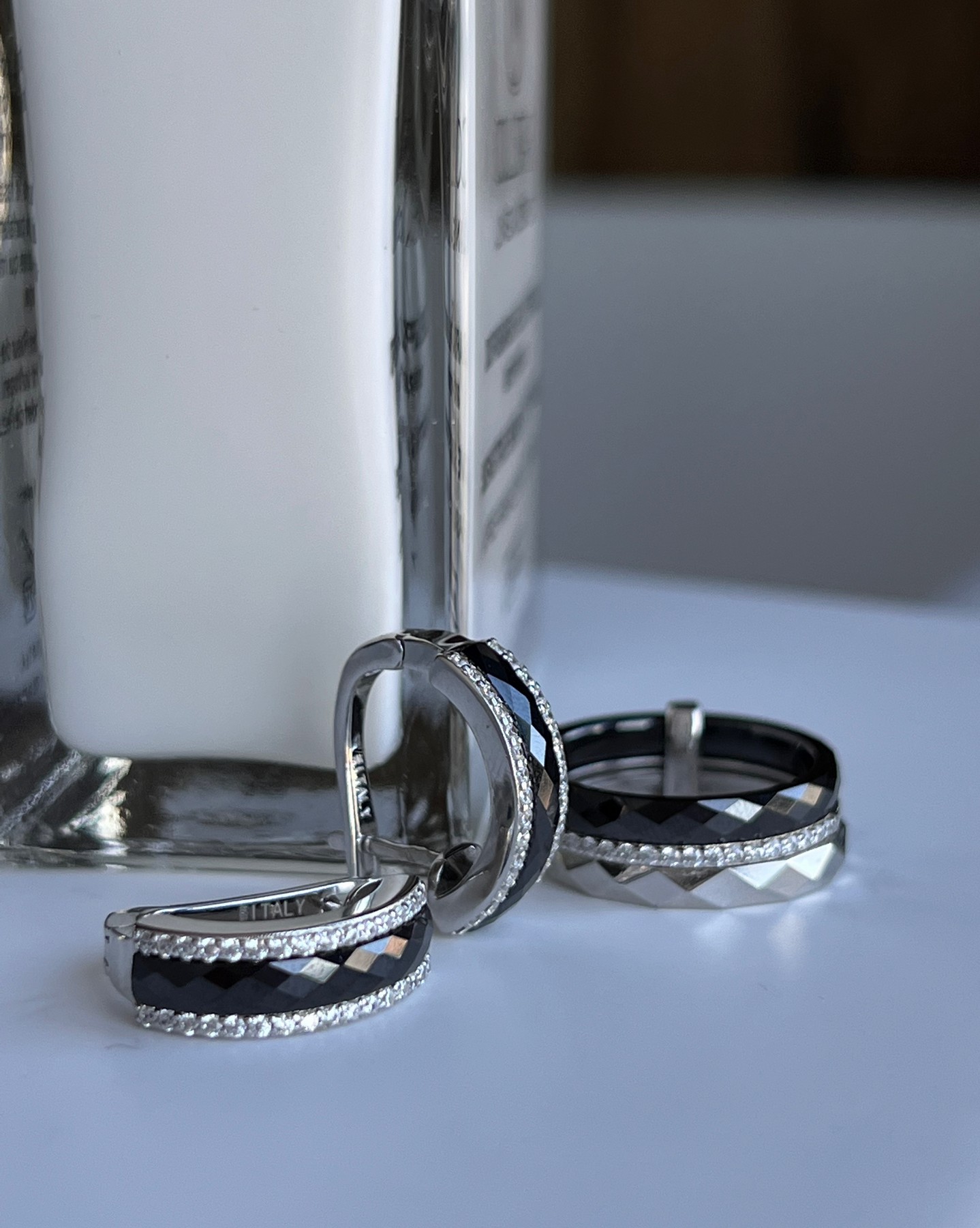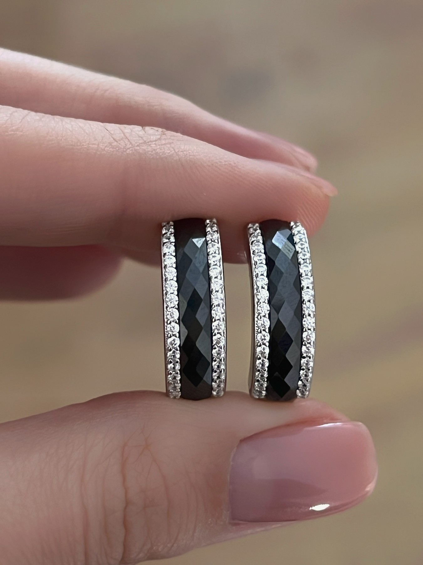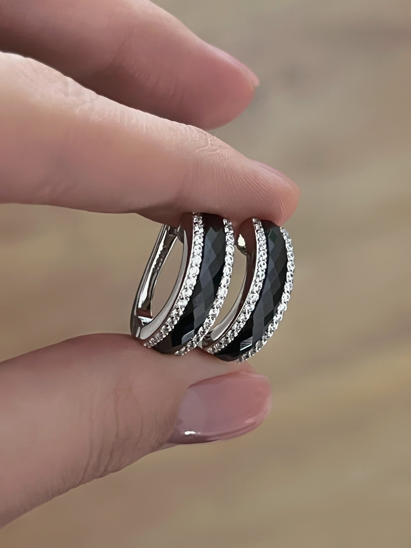 Серебряные серьги с черной керамикой и цирконием бриллиантовой огранки 003376