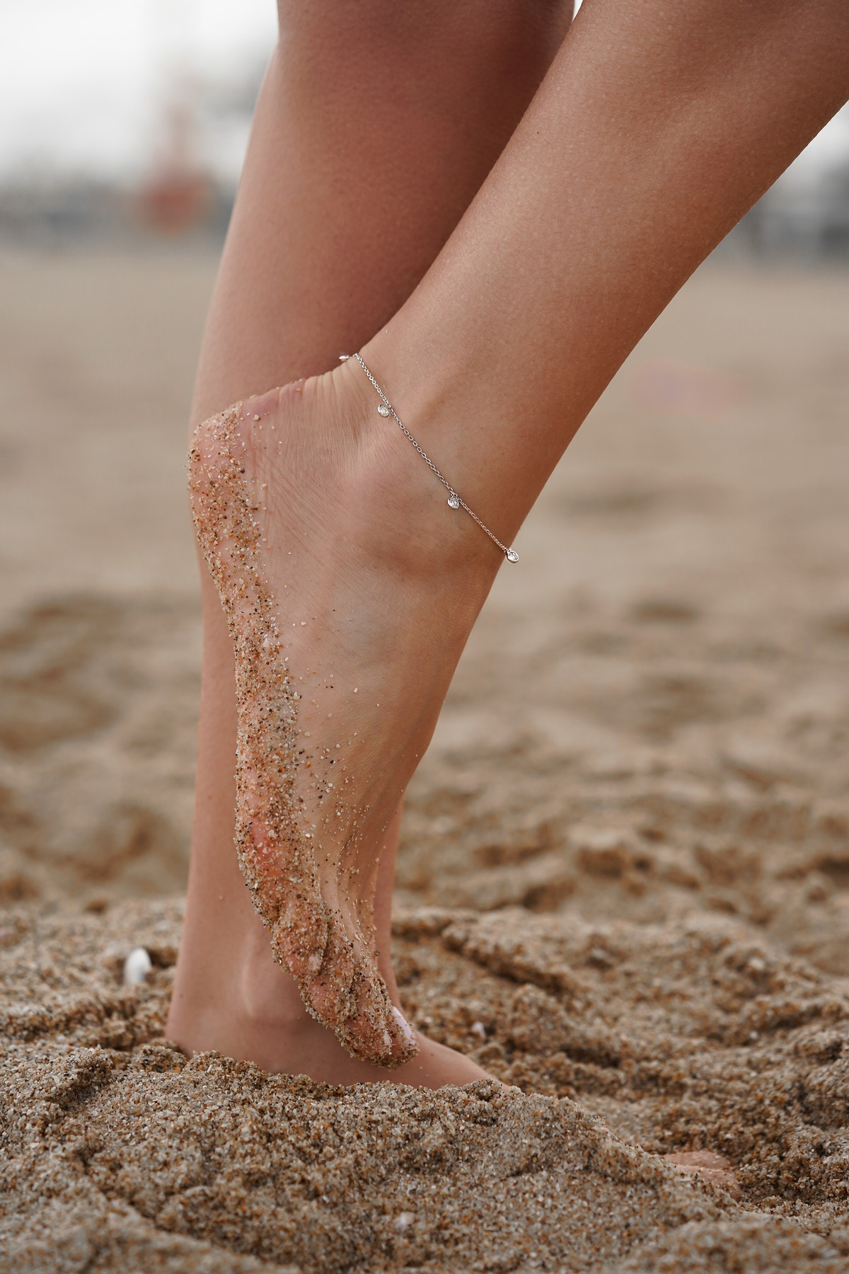Браслет серебряный на ножку с цирконием 000228