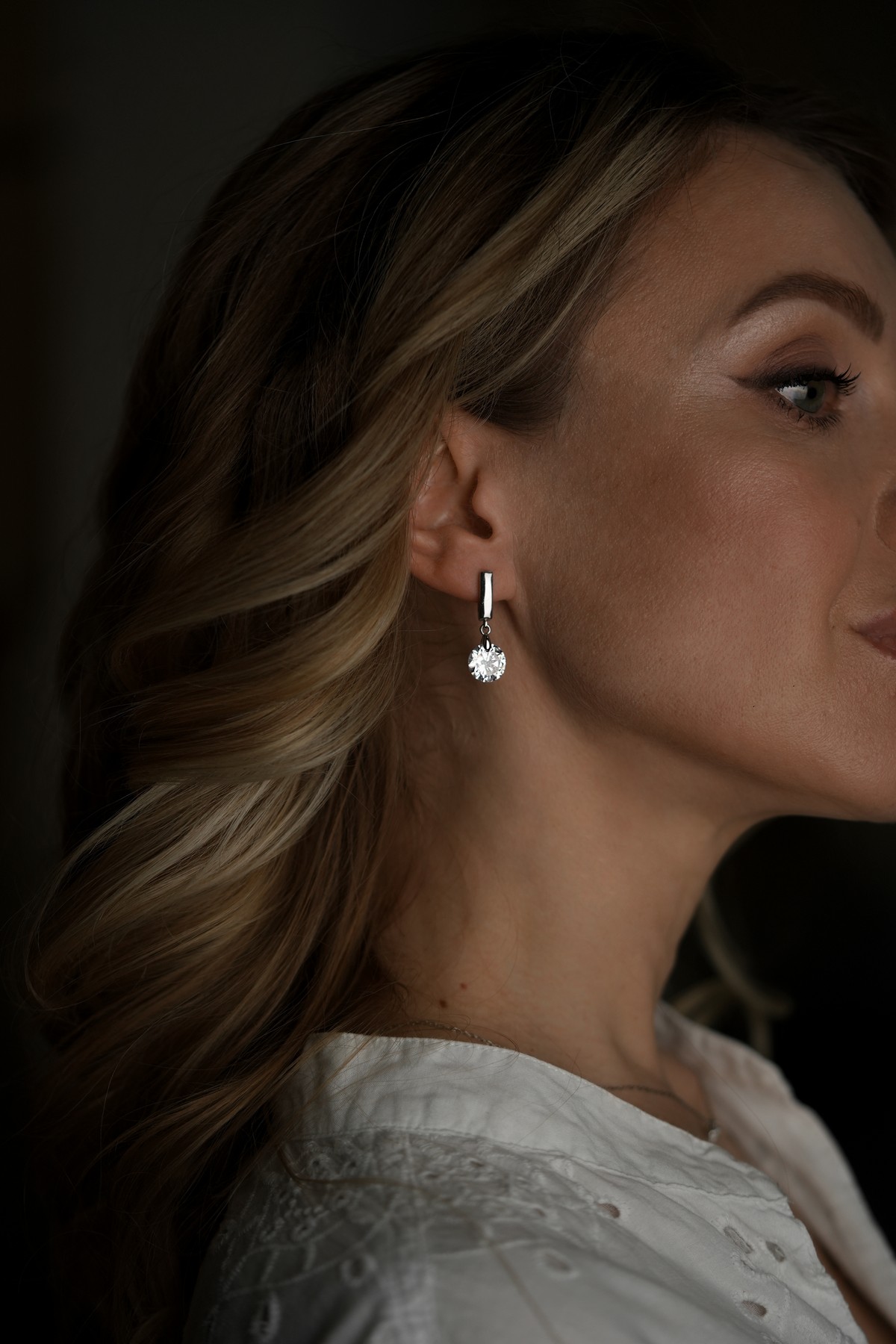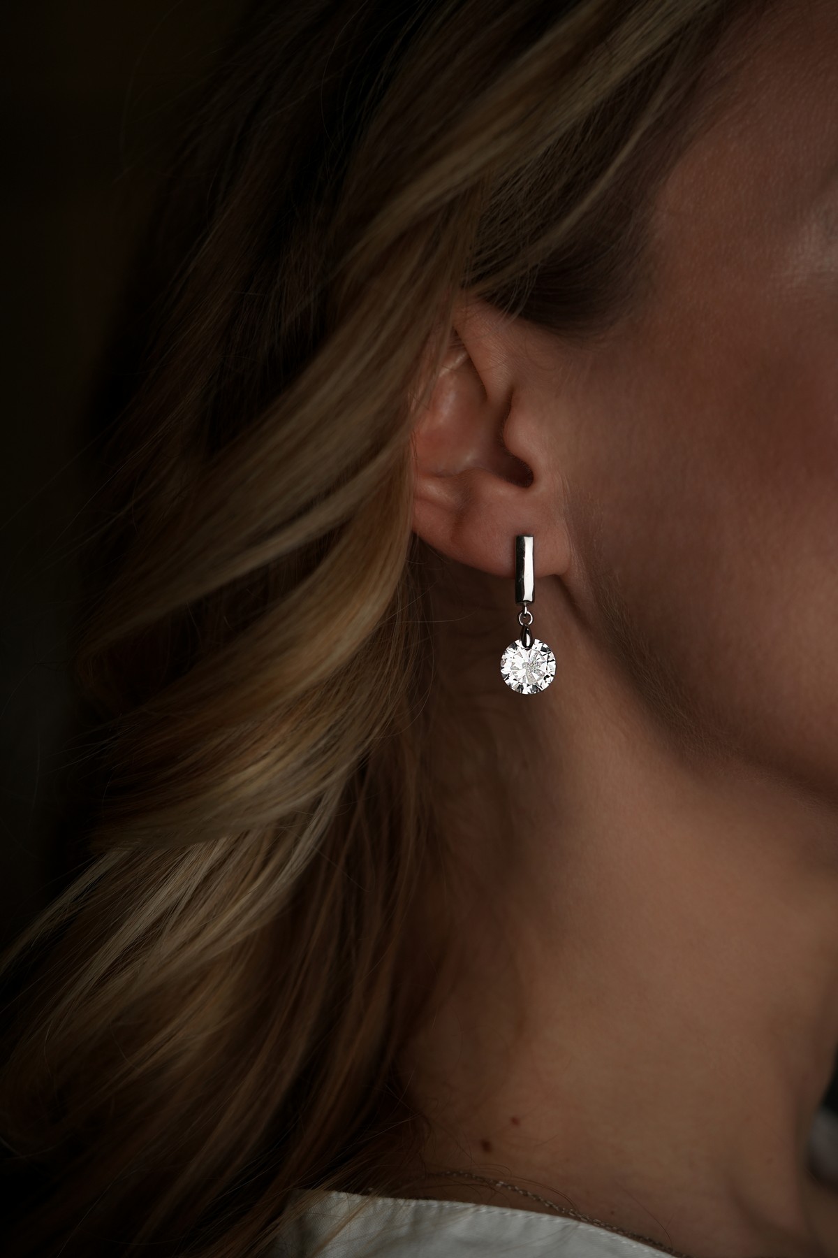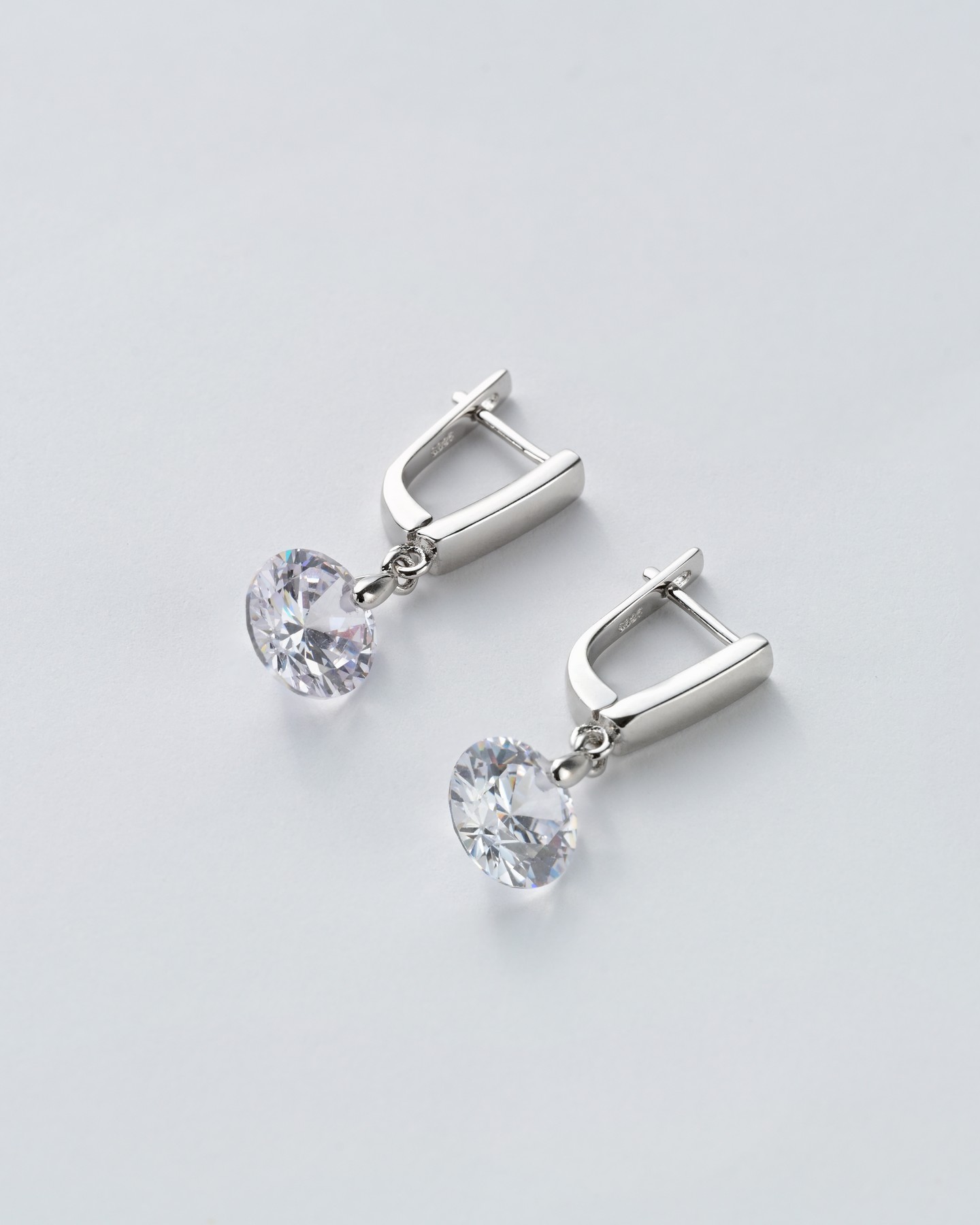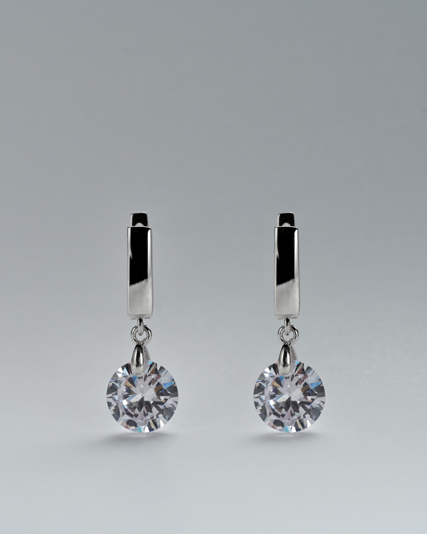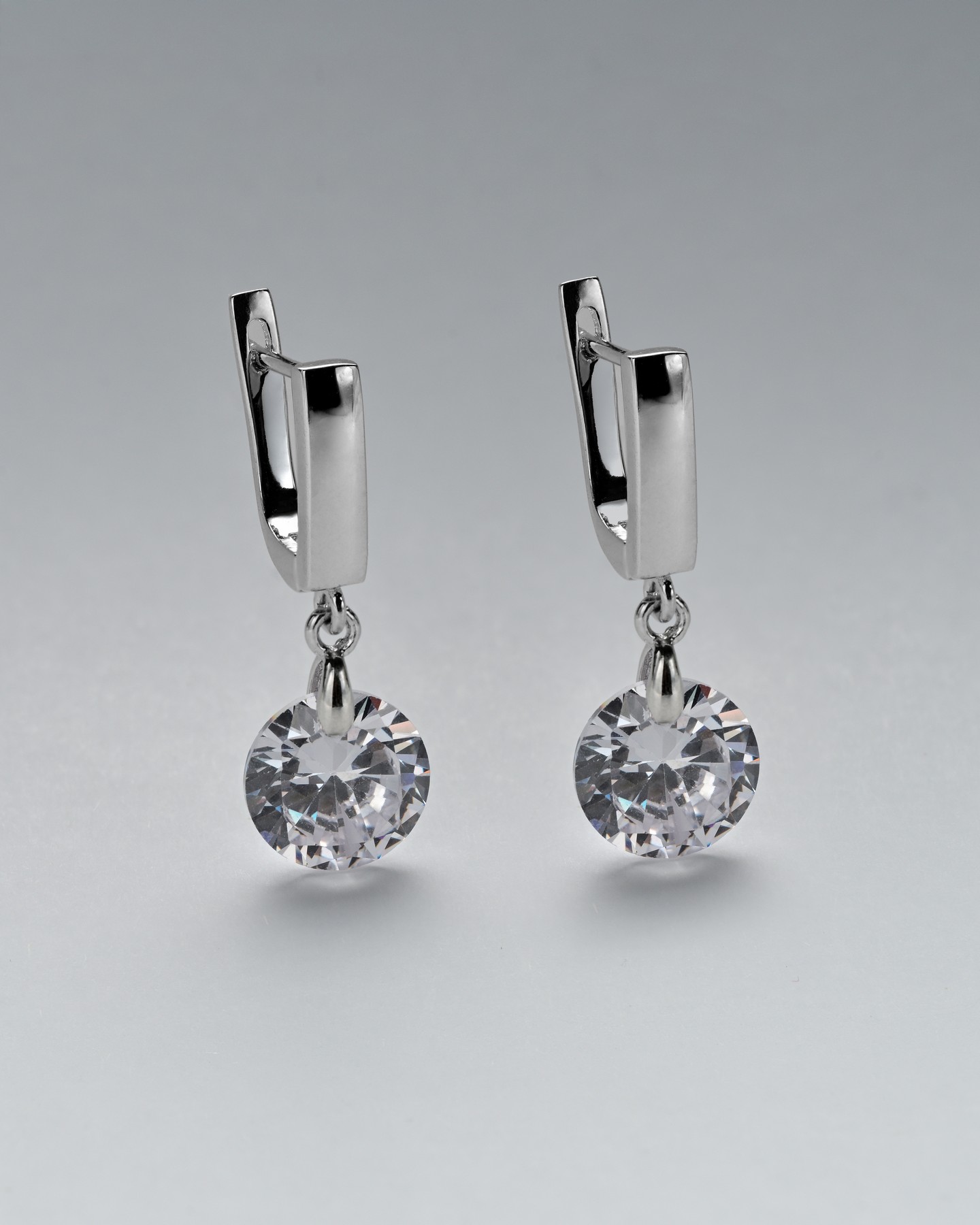 Серьги серебряные висячие с вращающимся цирконием бриллиантовой огранки 006438