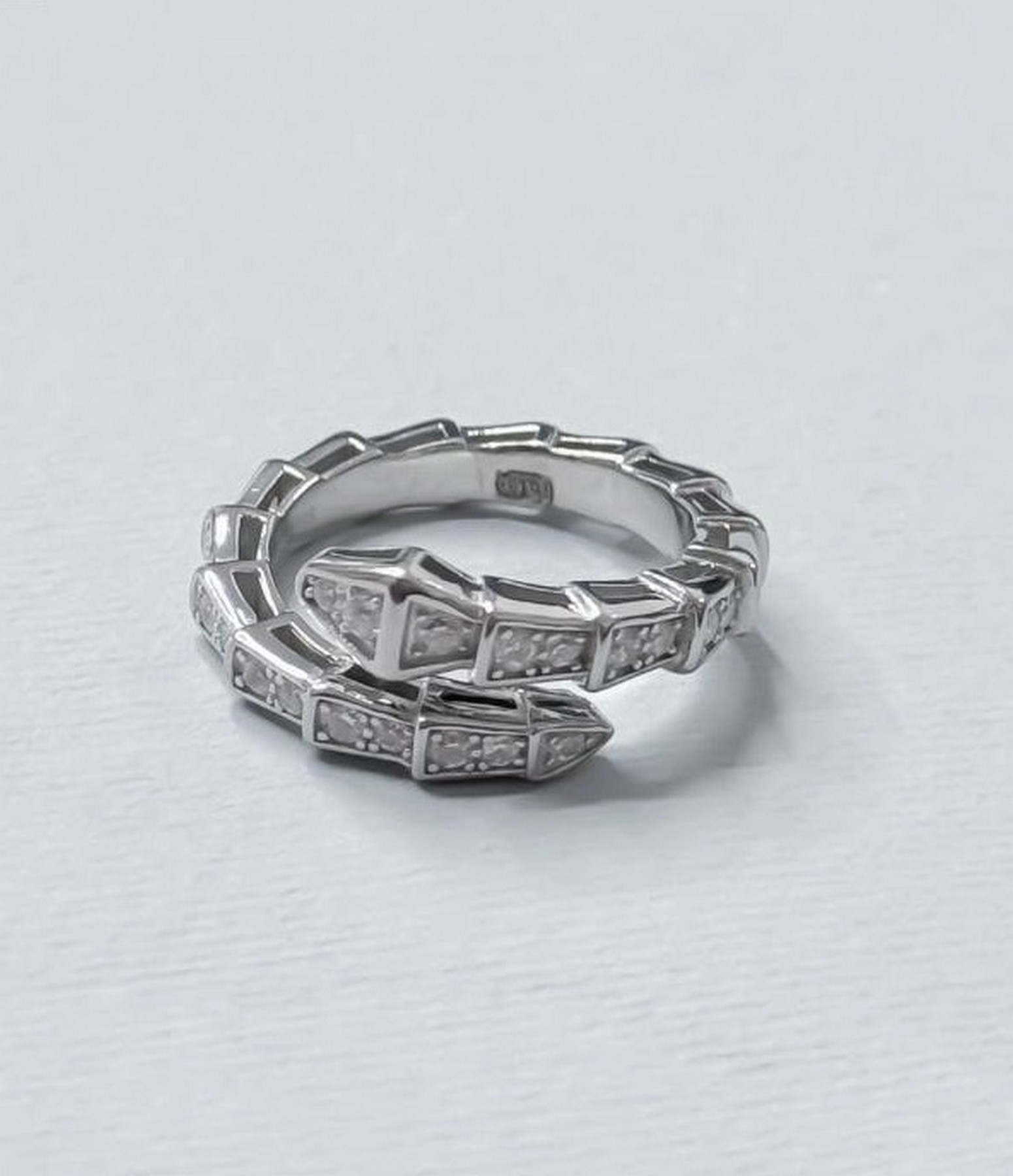 Кольцо серебряное с цирконием бриллиантовой огранки Змея 006874
