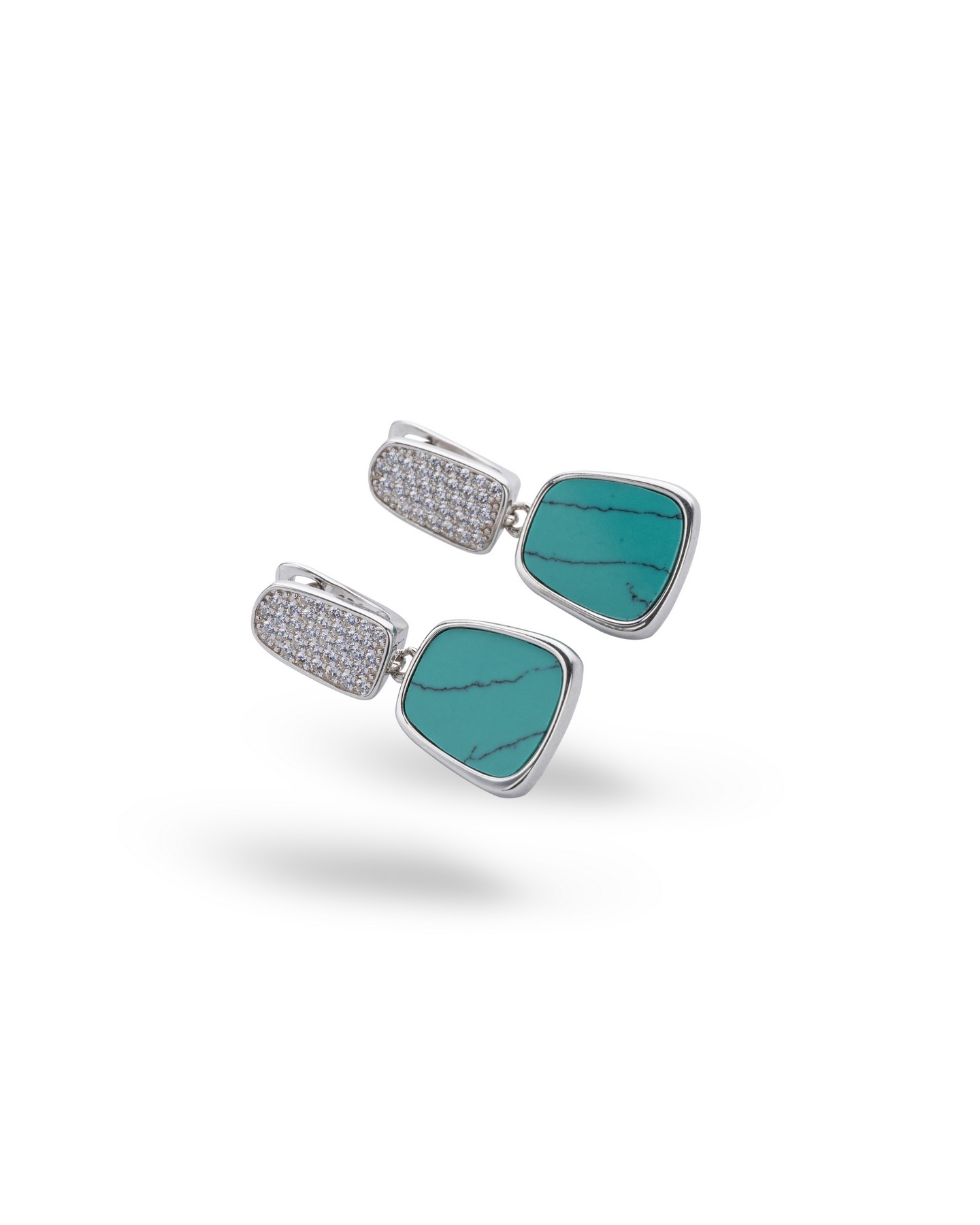 Серьги серебряные Геометрия с бирюзой висячие 006739