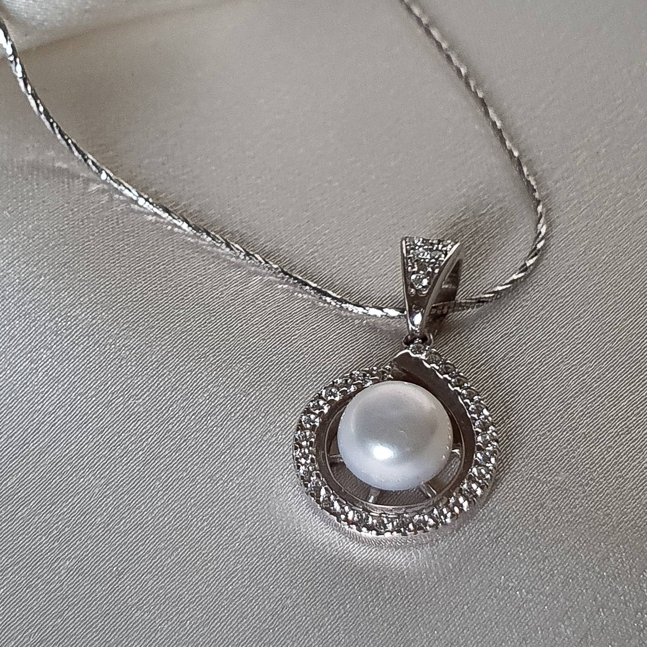 Подвес серебряный с жемчугом и цирконием бриллиантовой огранки 002097