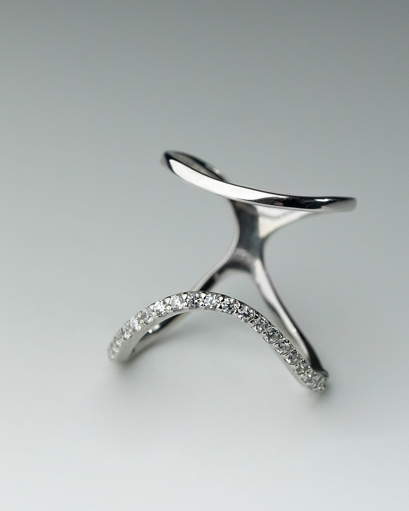 Кольцо фаланговое серебряное с цирконием бриллиантовой огранки