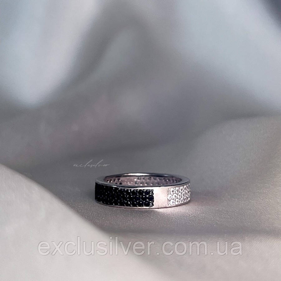 Кольцо серебряное двустороннее с чёрным и белым цирконием бриллиантовой огранки
