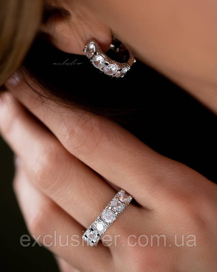 Кольцо серебряное с цирконием бриллиантовой огранки 006351