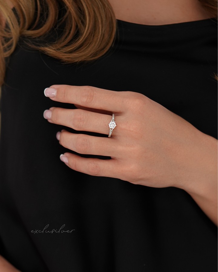 Кольцо серебряное с цирконием бриллиантовой огранки 000611