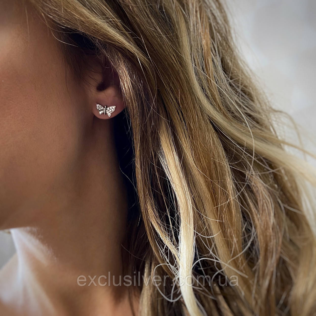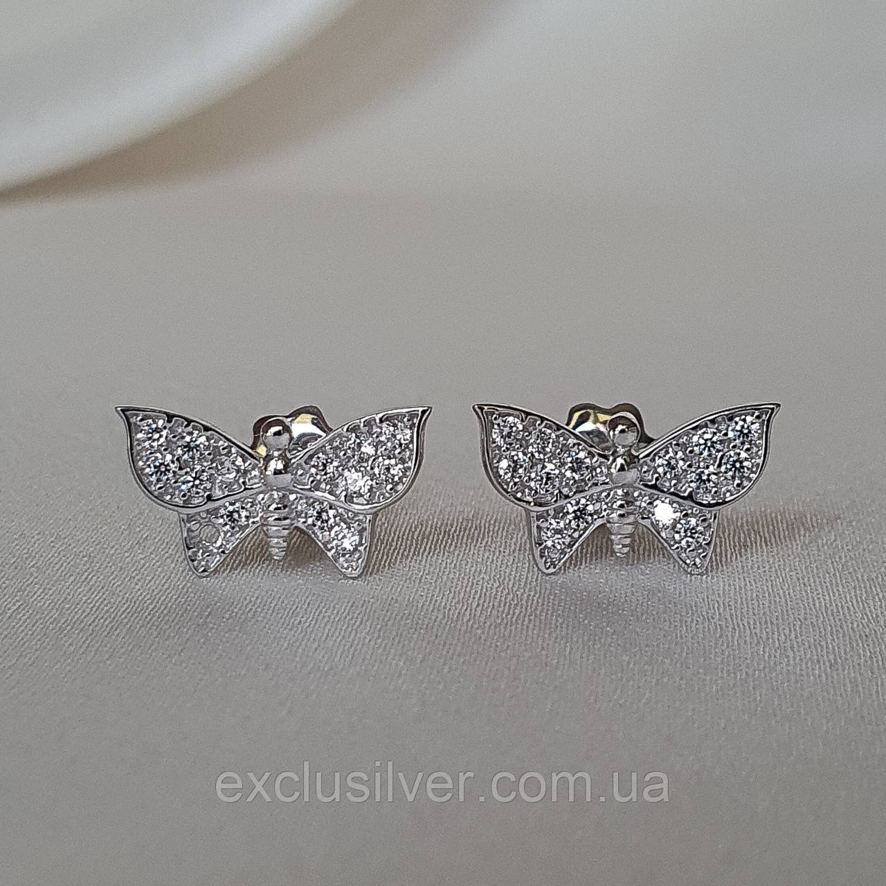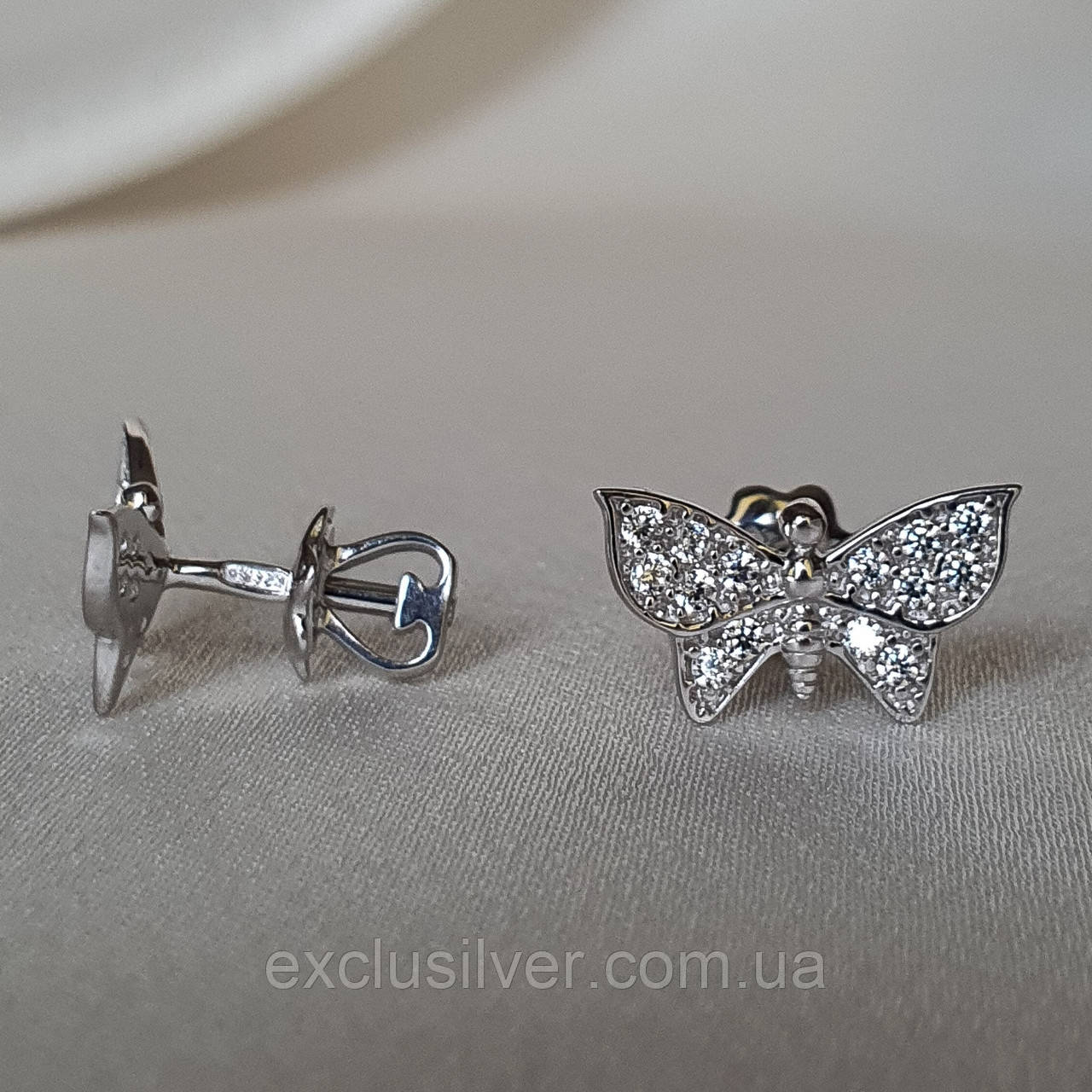 Серебряные пусеты (гвоздики) на закрутке Бабочки