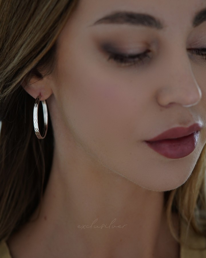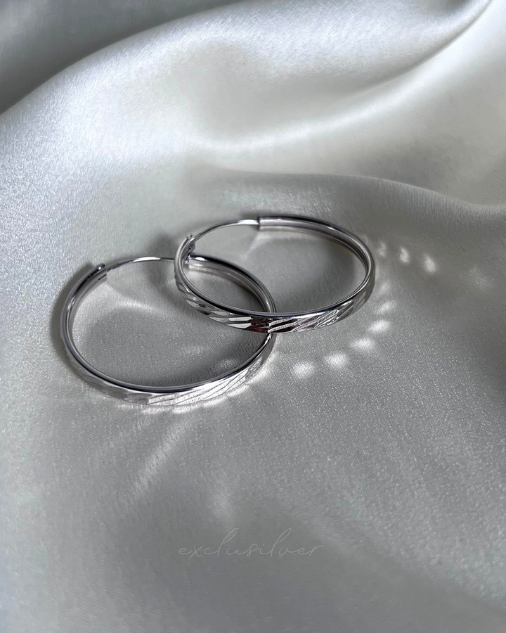 Серьги - кольца серебряные с алмазной насечкой 3 см 003438