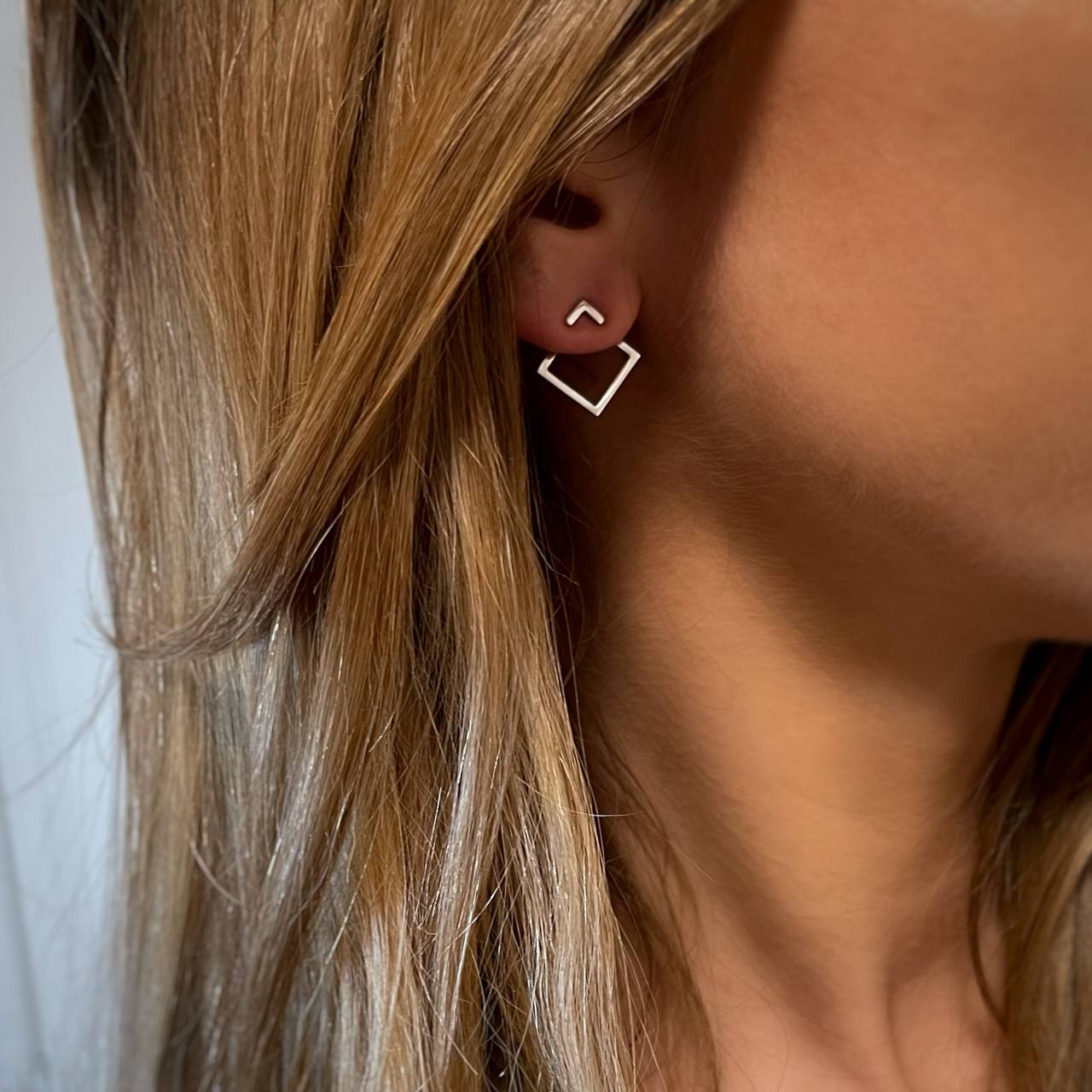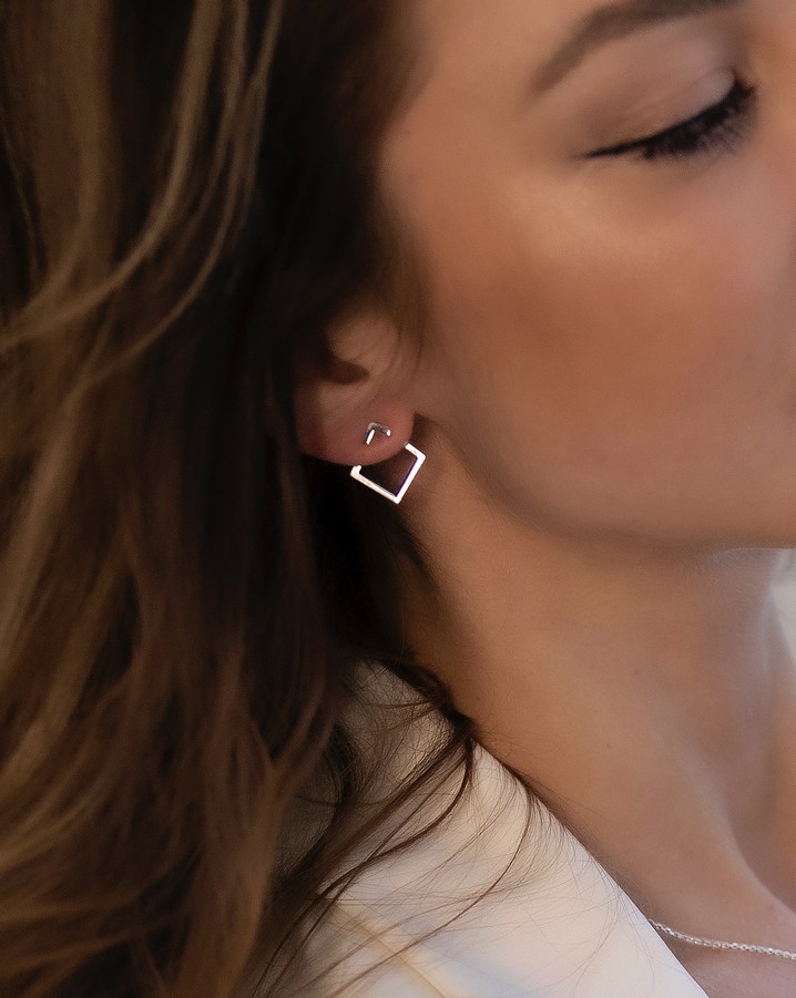 Серьги - джекеты серебряные Квадрат
