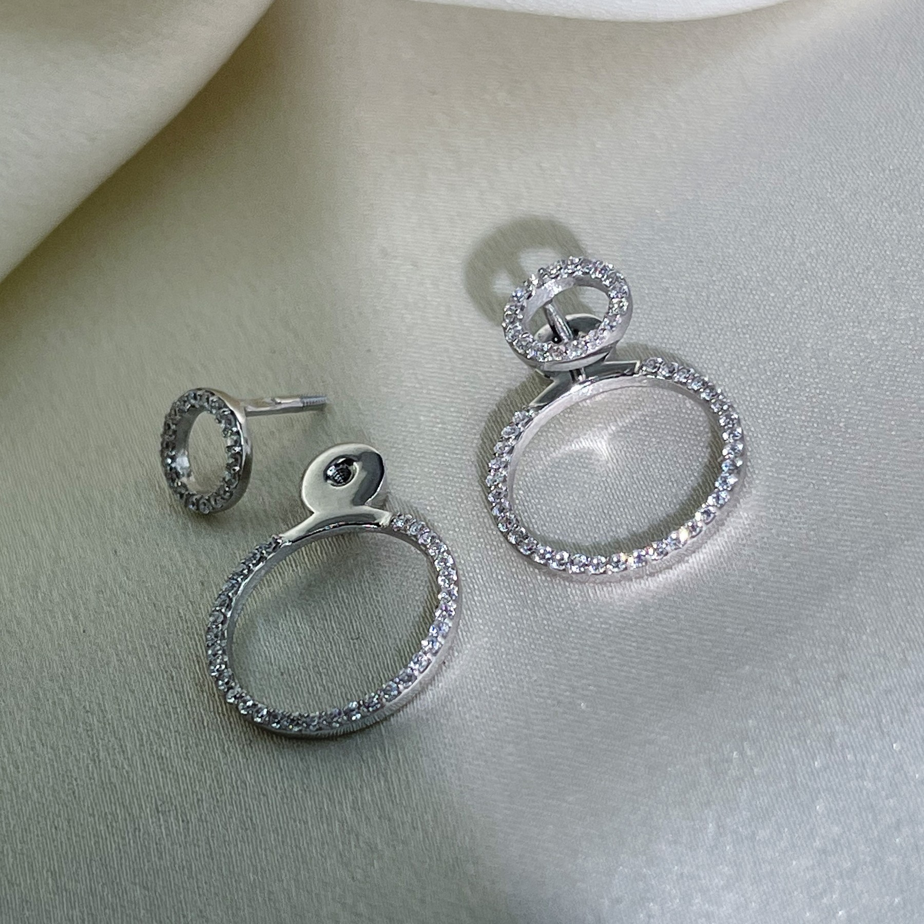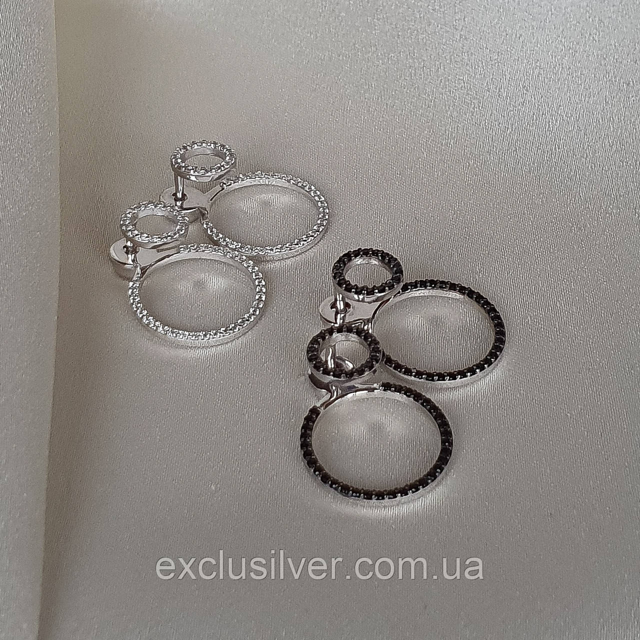 Серьги - джекеты серебряные Мерцающие круги