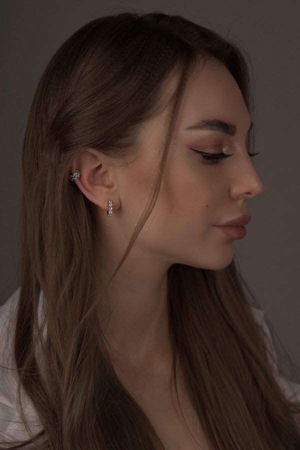 Серьги - каффы с цирконием бриллиантовой огранки Корона