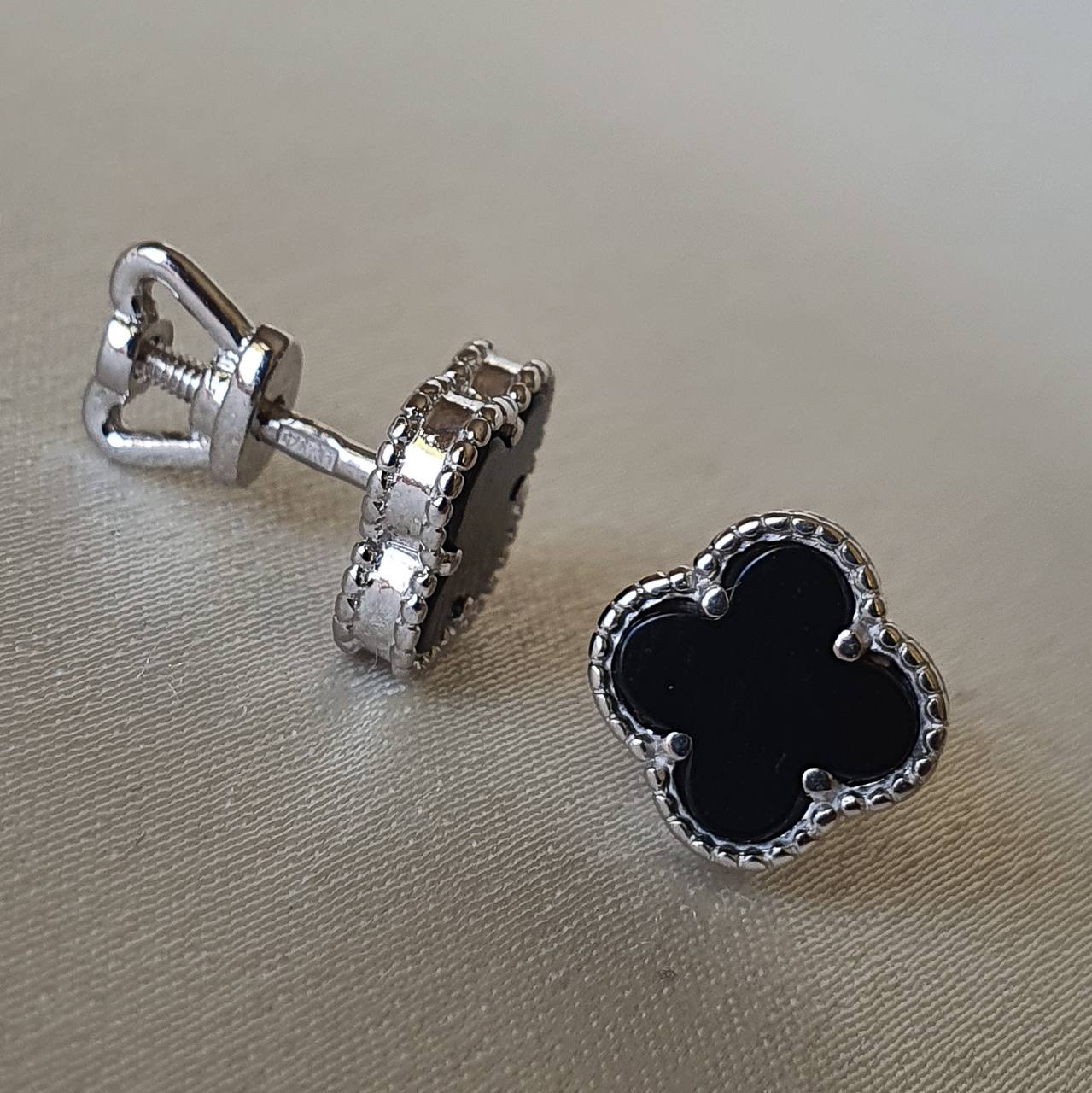 Серьги - пусеты (гвоздики) серебряные Клевер 0,9см