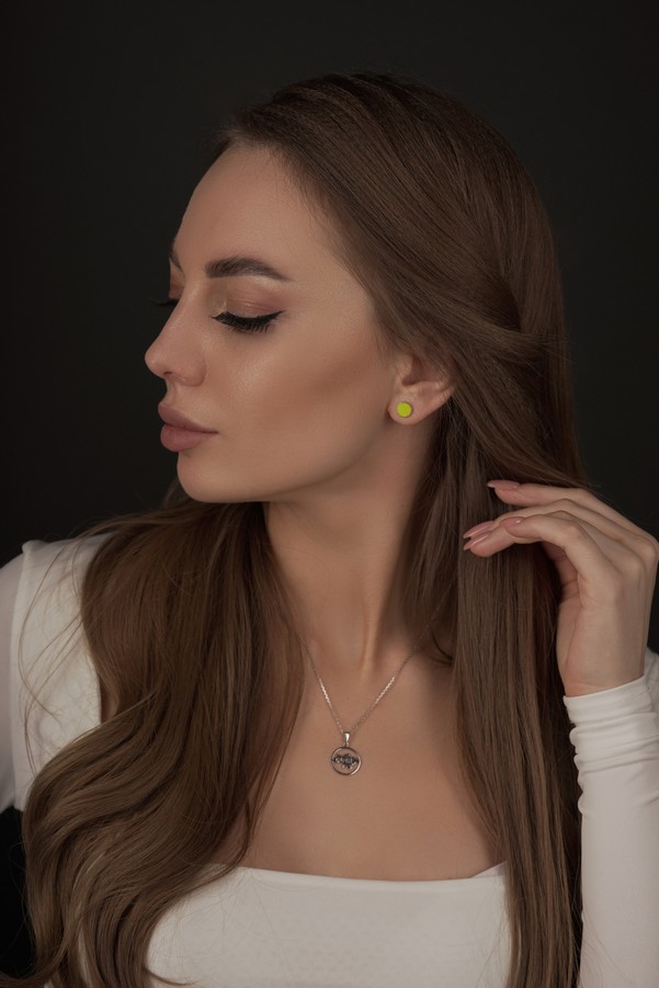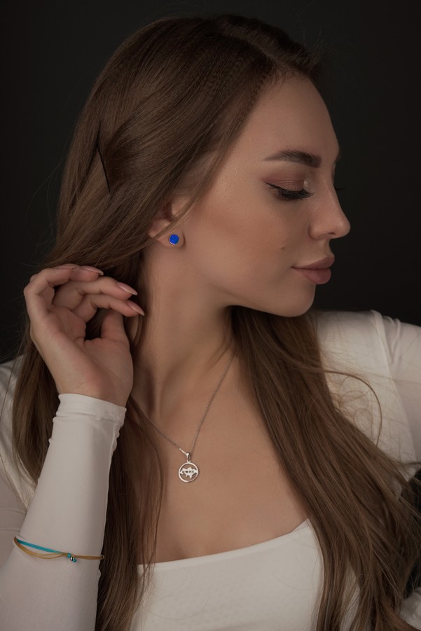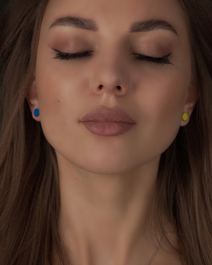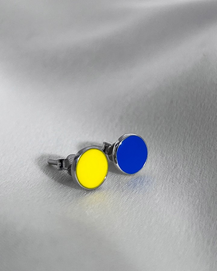 Серьги - пусеты (гвоздики) серебряные с желто-голубой эмалью