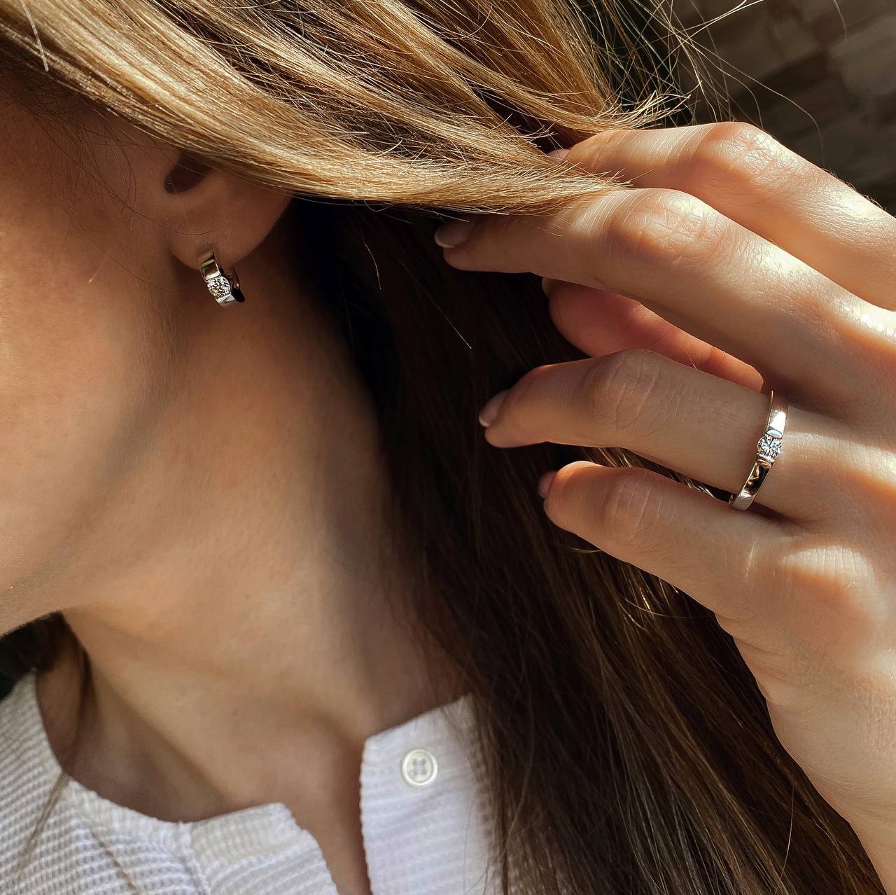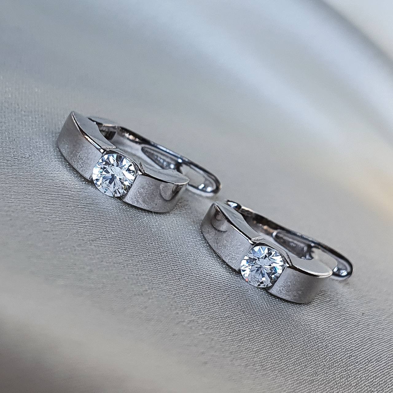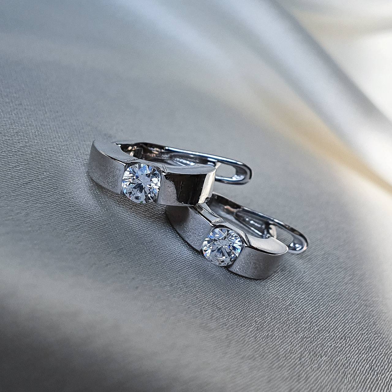 Серьги серебряные колечки с цирконием с особой мерцающей огранкой