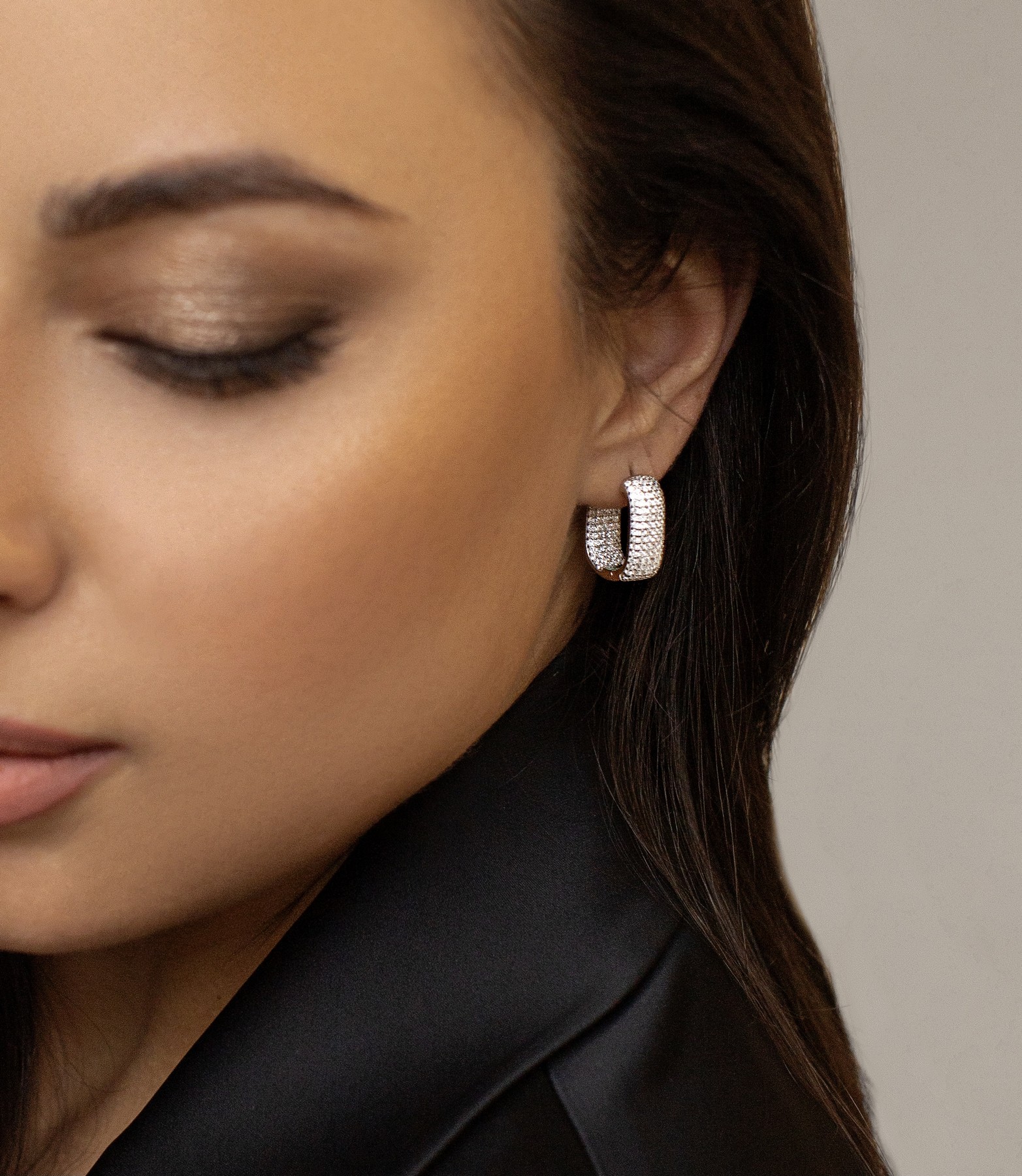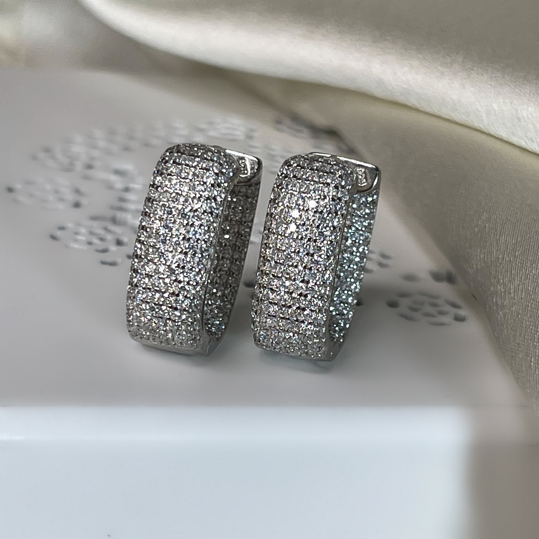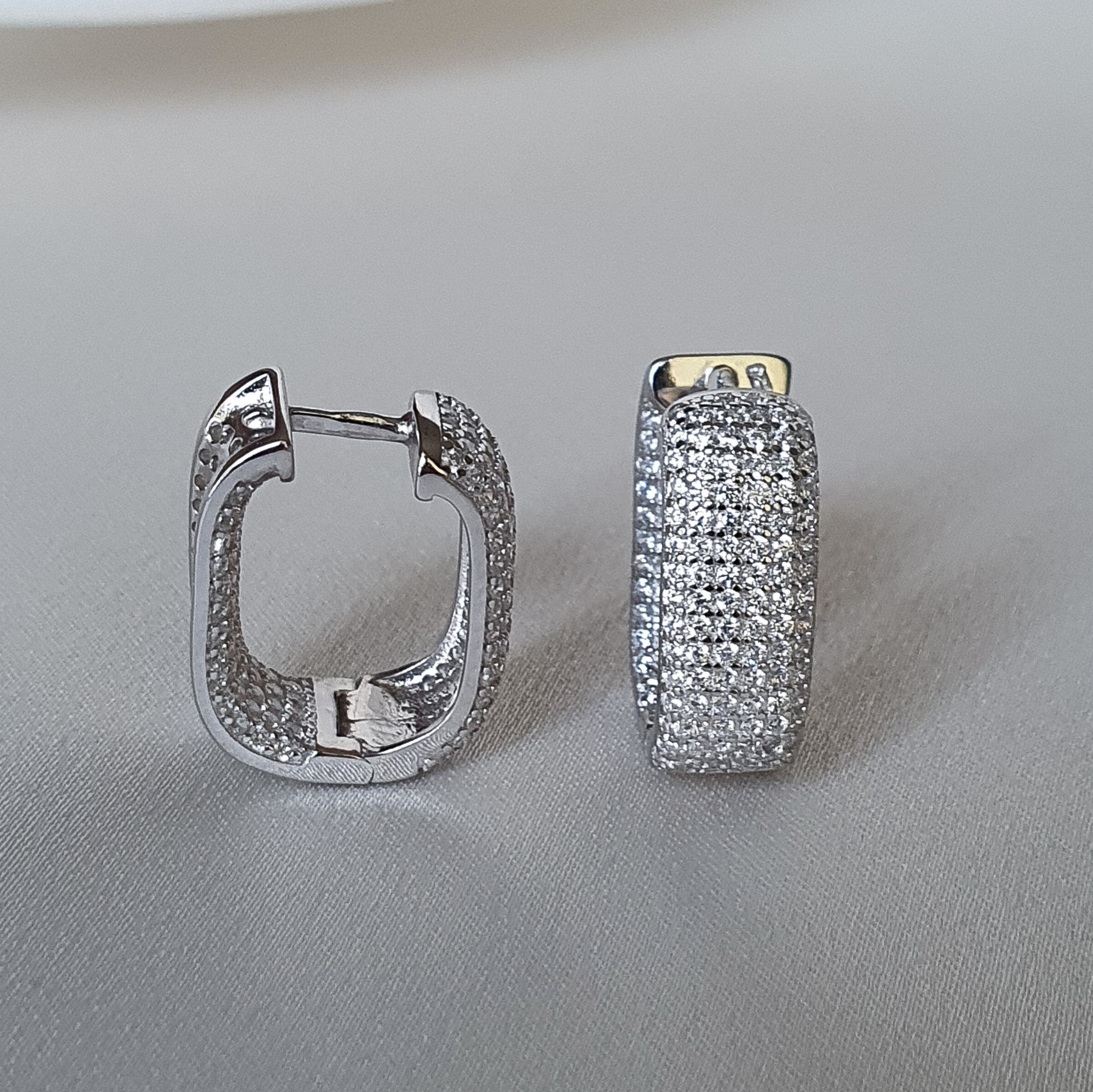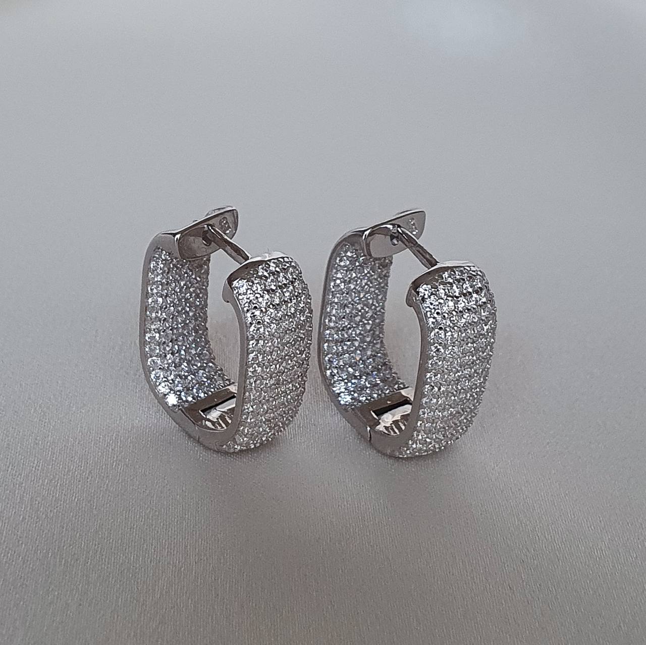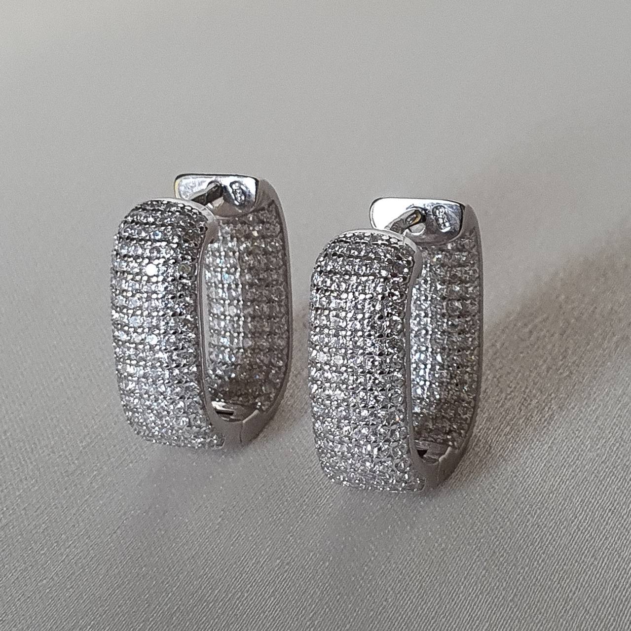 Серьги серебряные с усыпкой из циркония бриллиантовой огранки