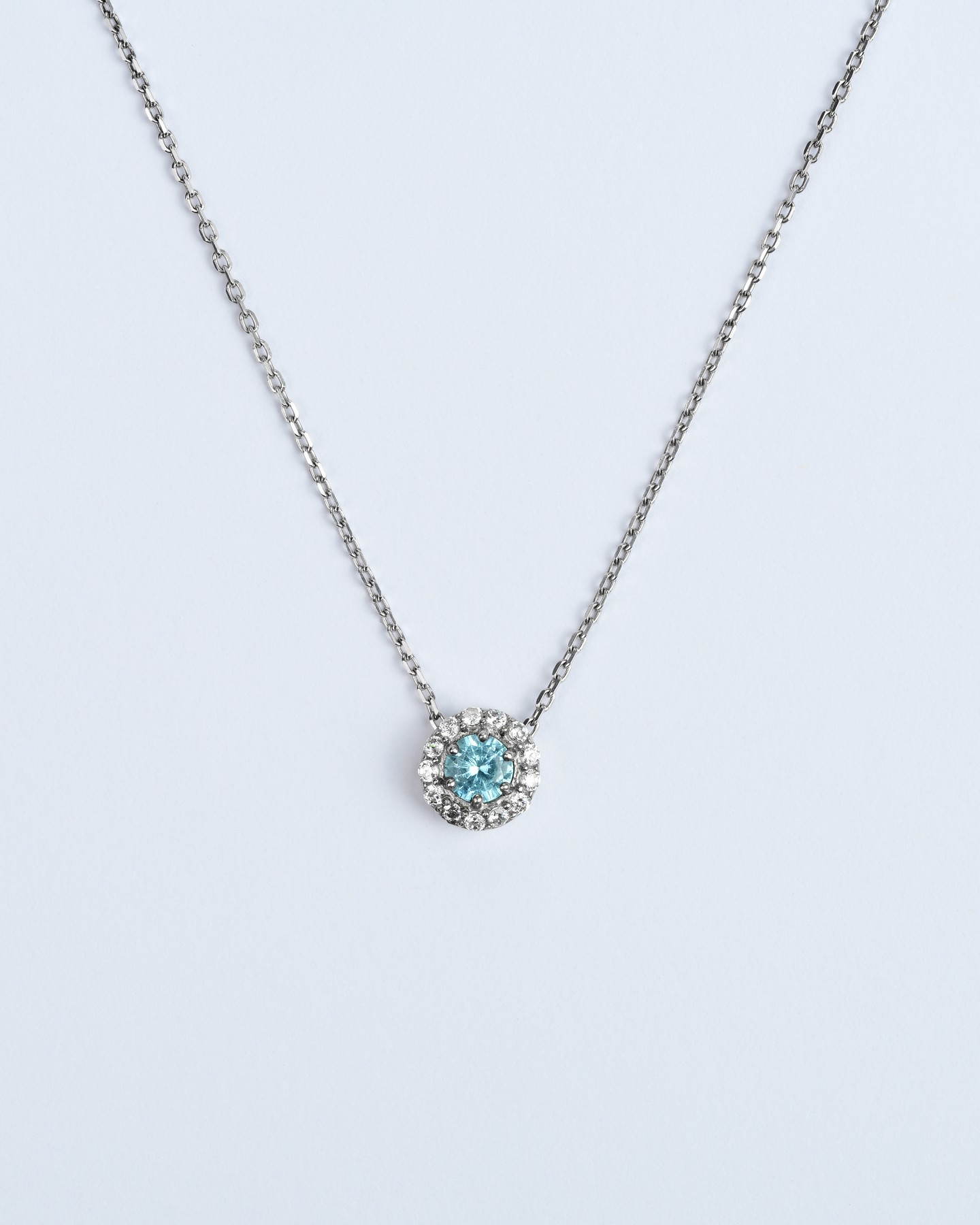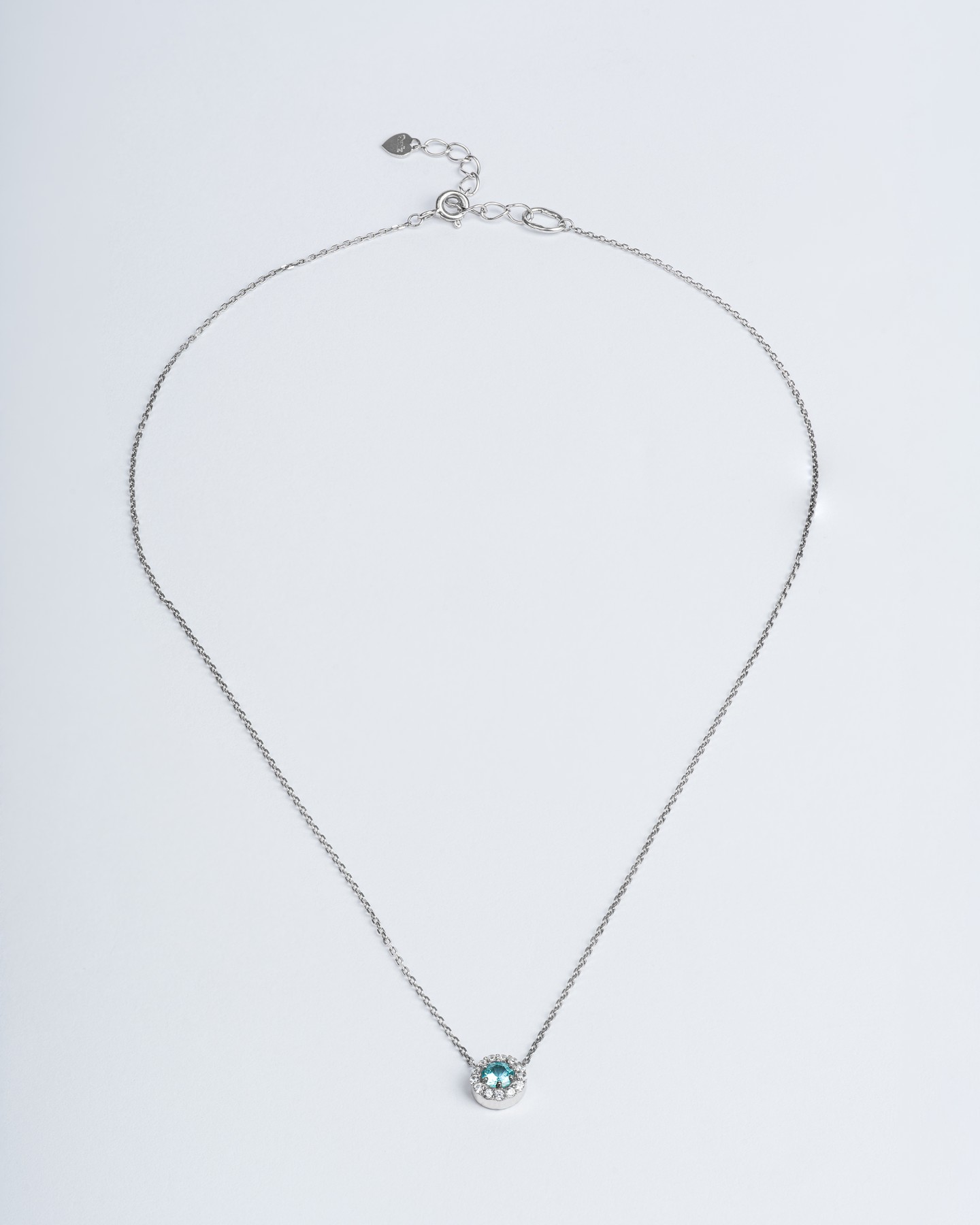 Срібне кольє з підвісом із блакитного цирконію діамантової огранки і розсипом по колу 006609