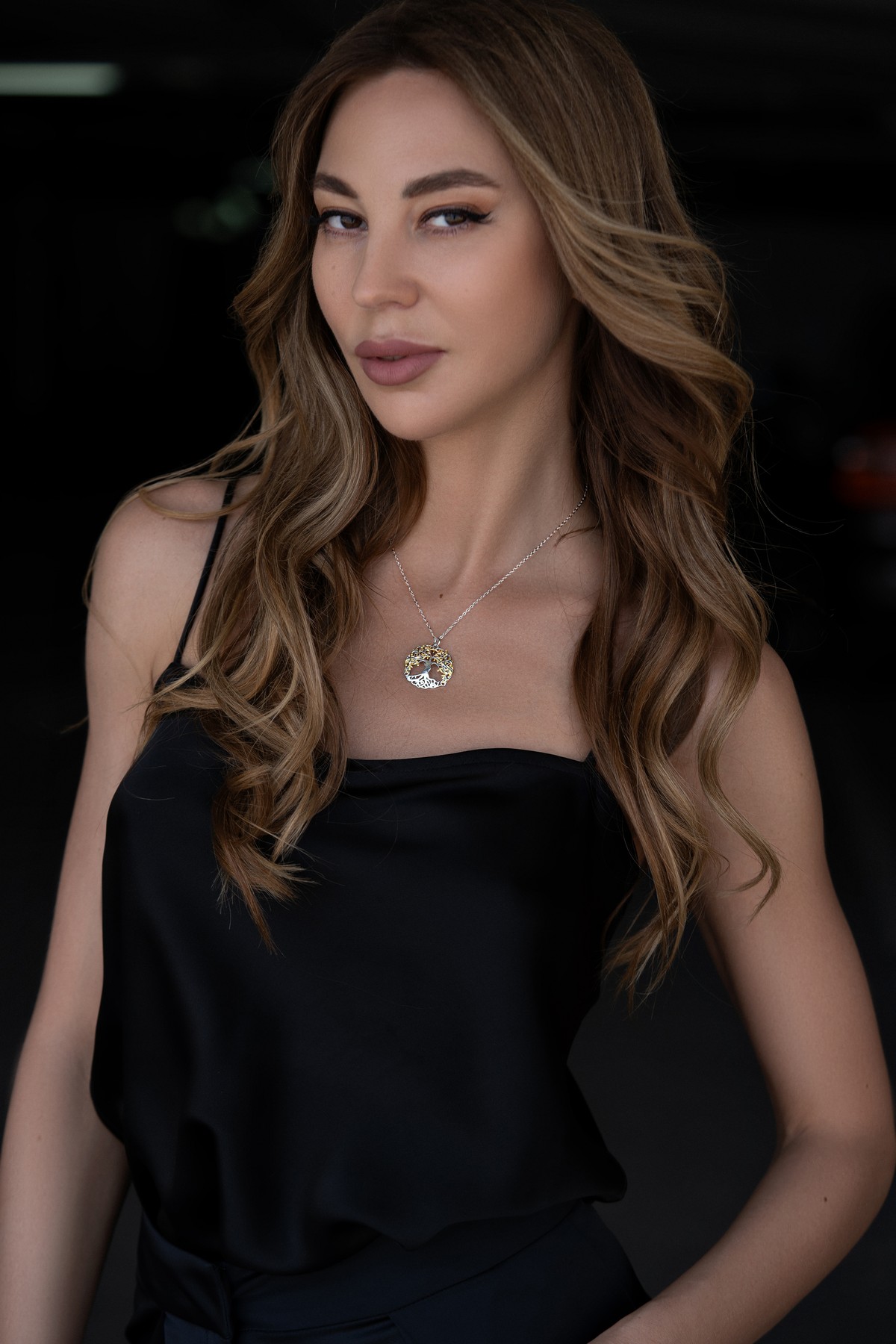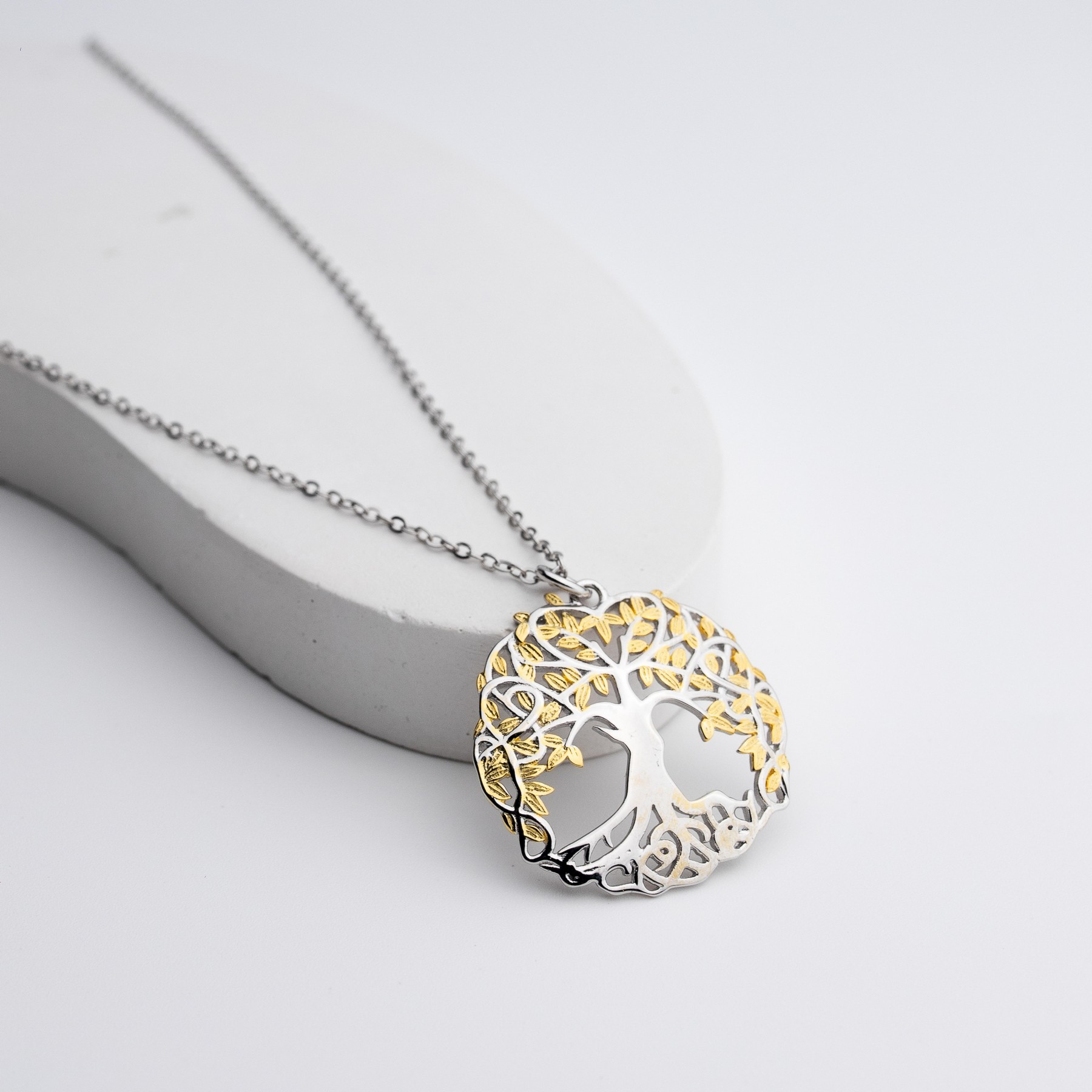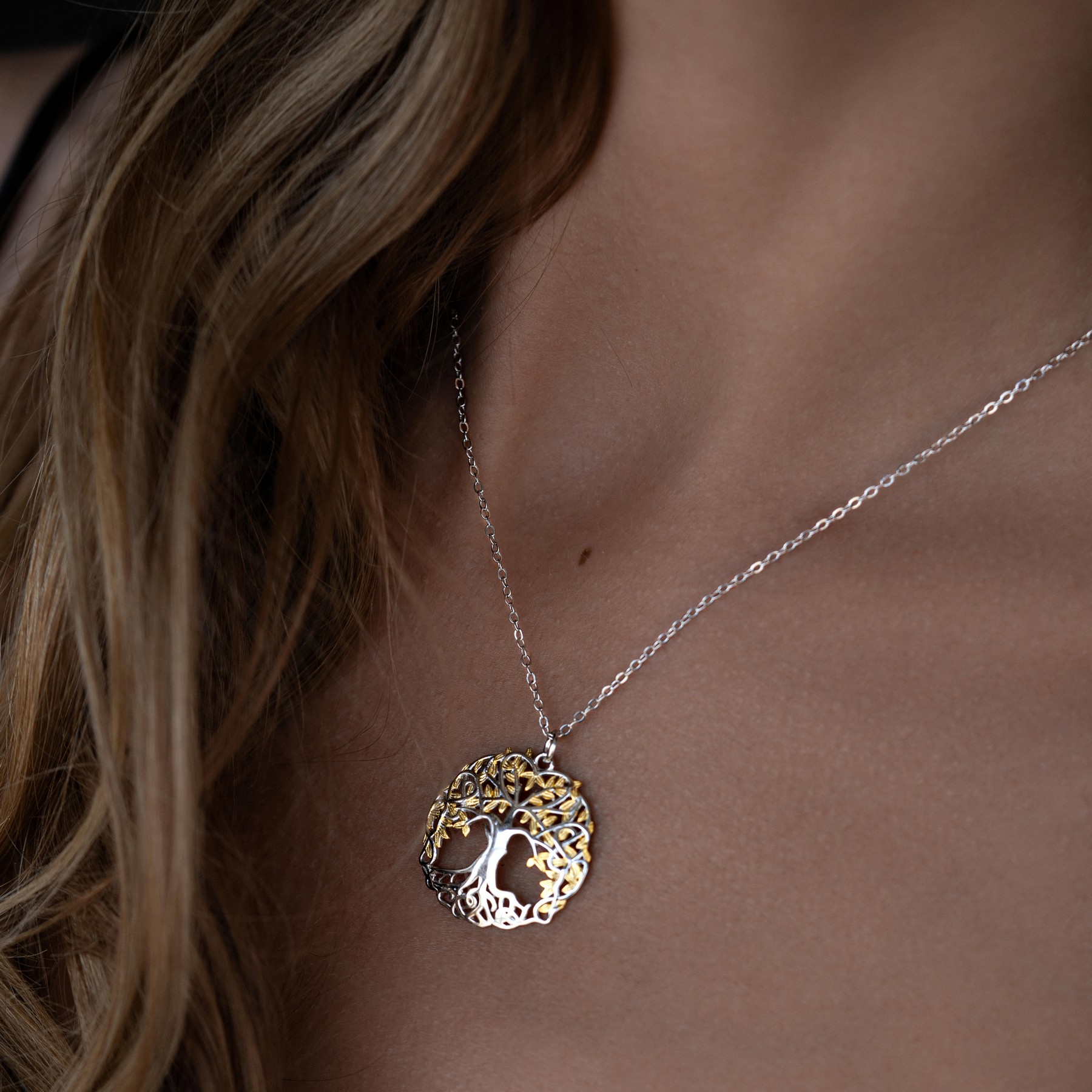 Срібне кольє з медальйоном с желтым родием Дерево життя