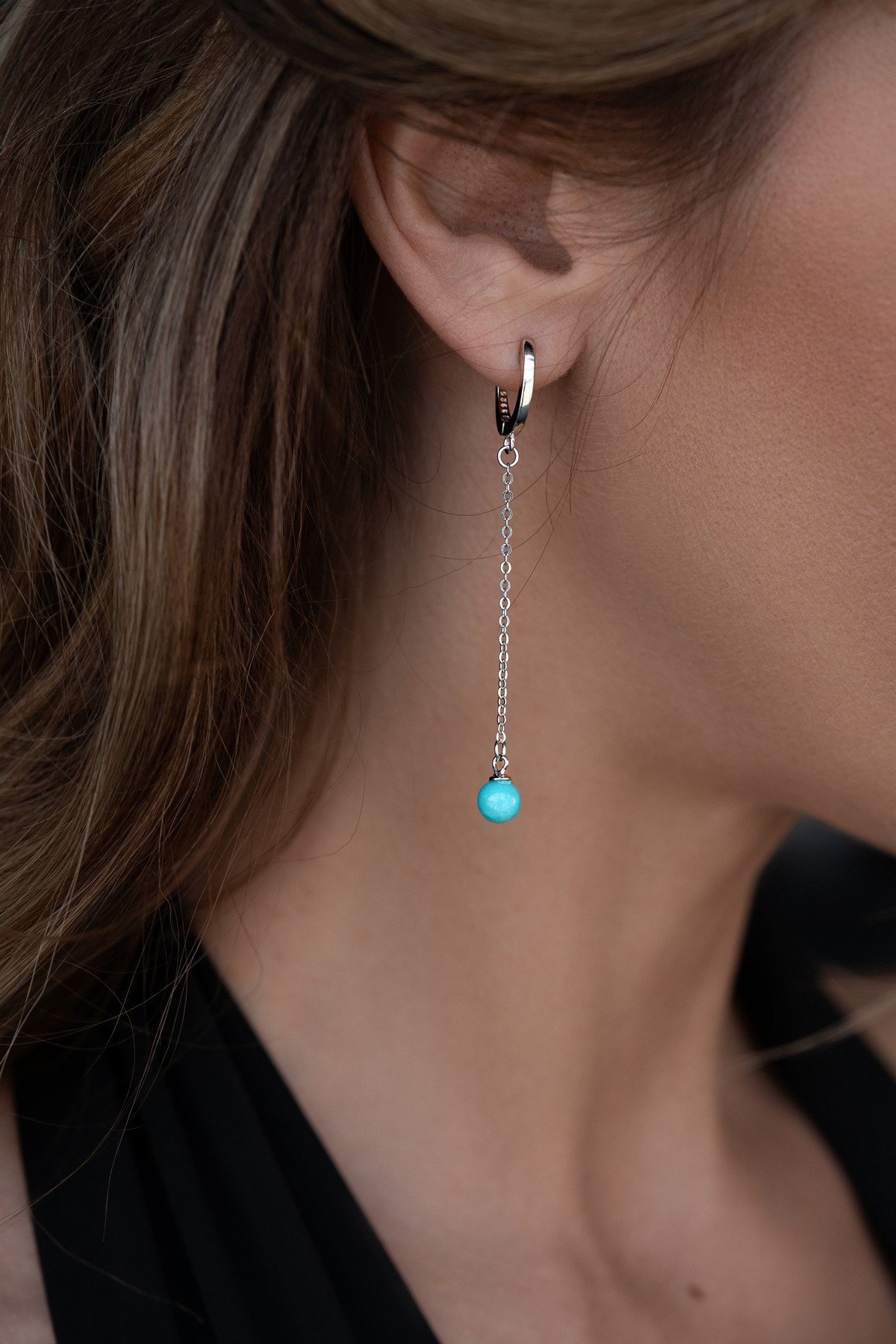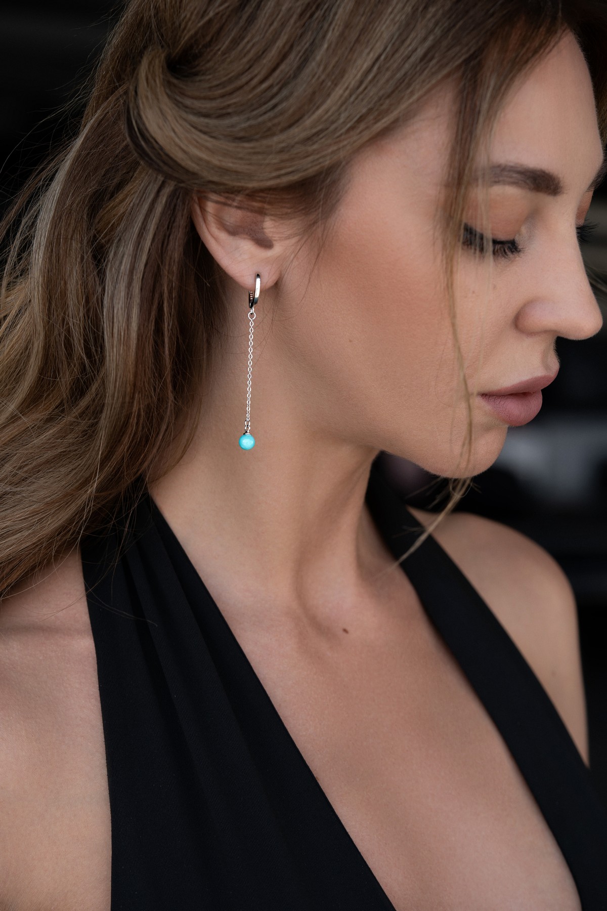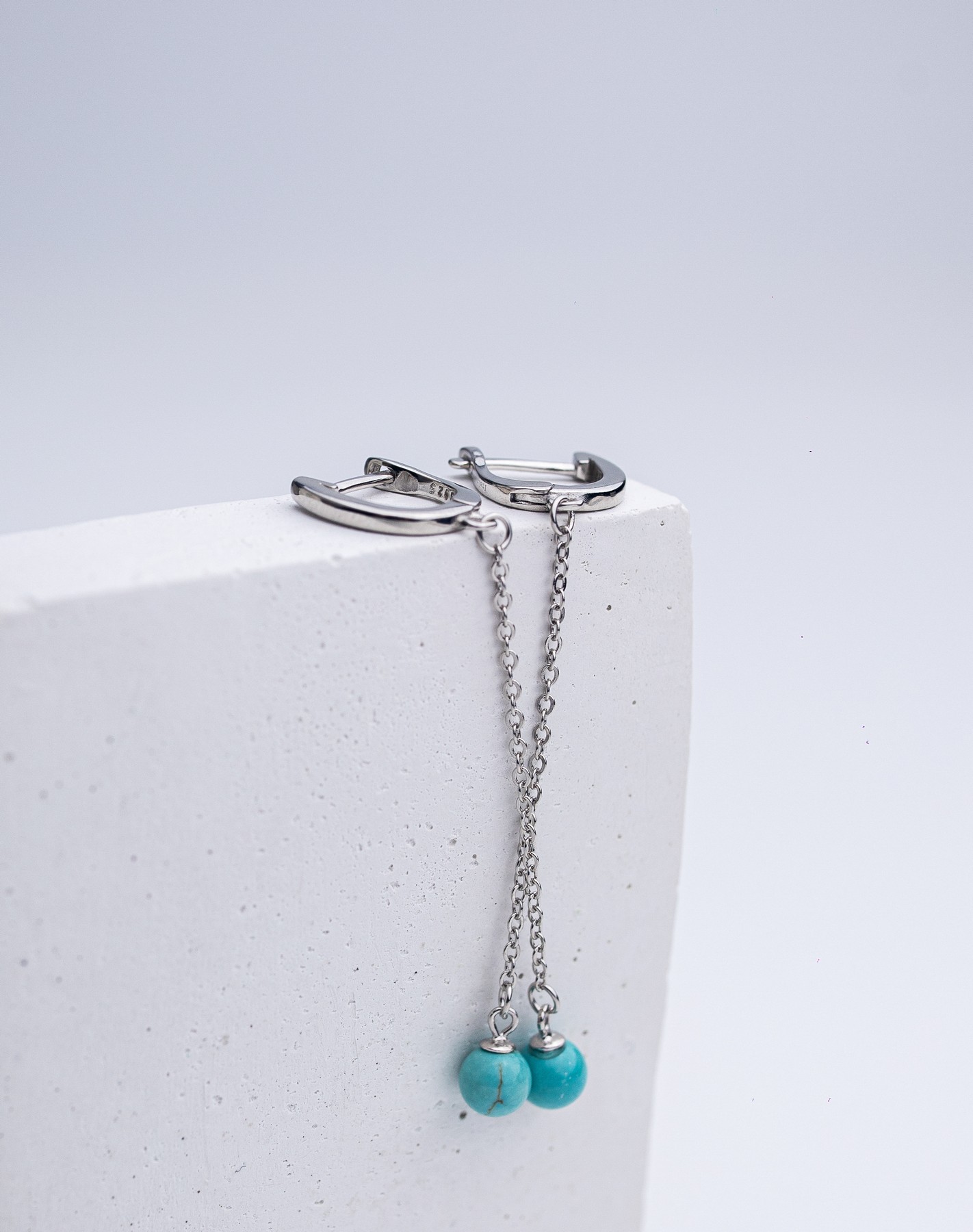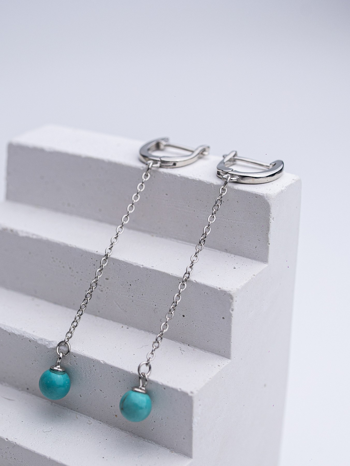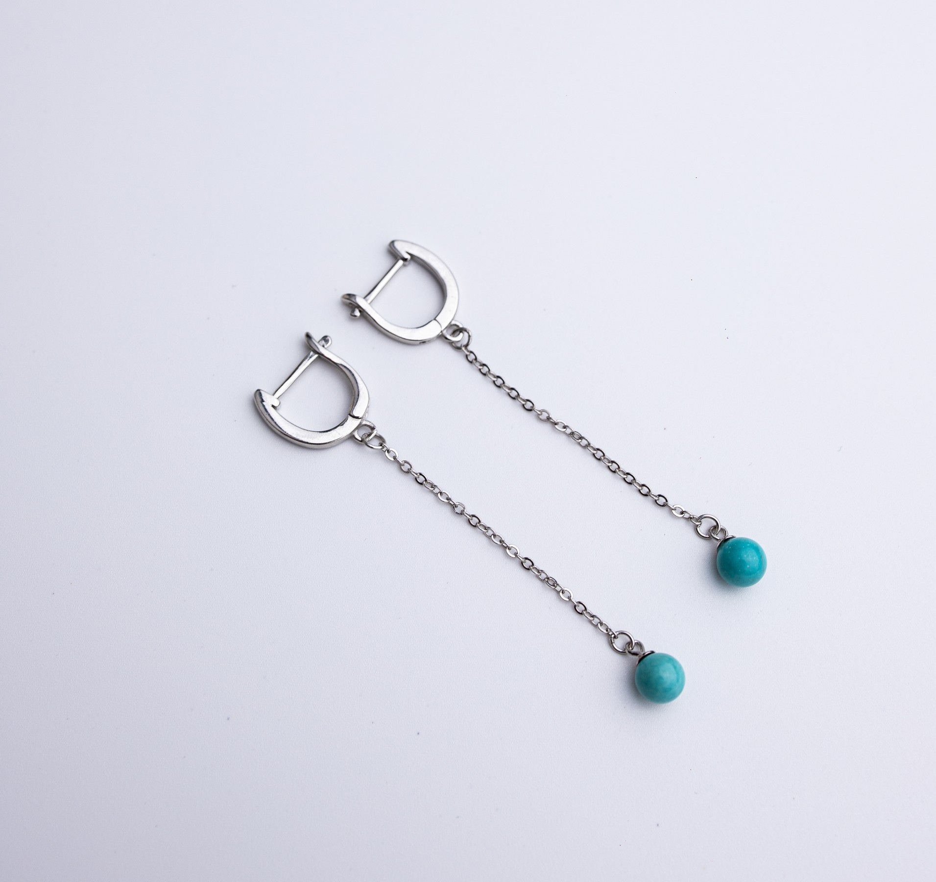 Срібні сережки висячі з бірюзою 006278