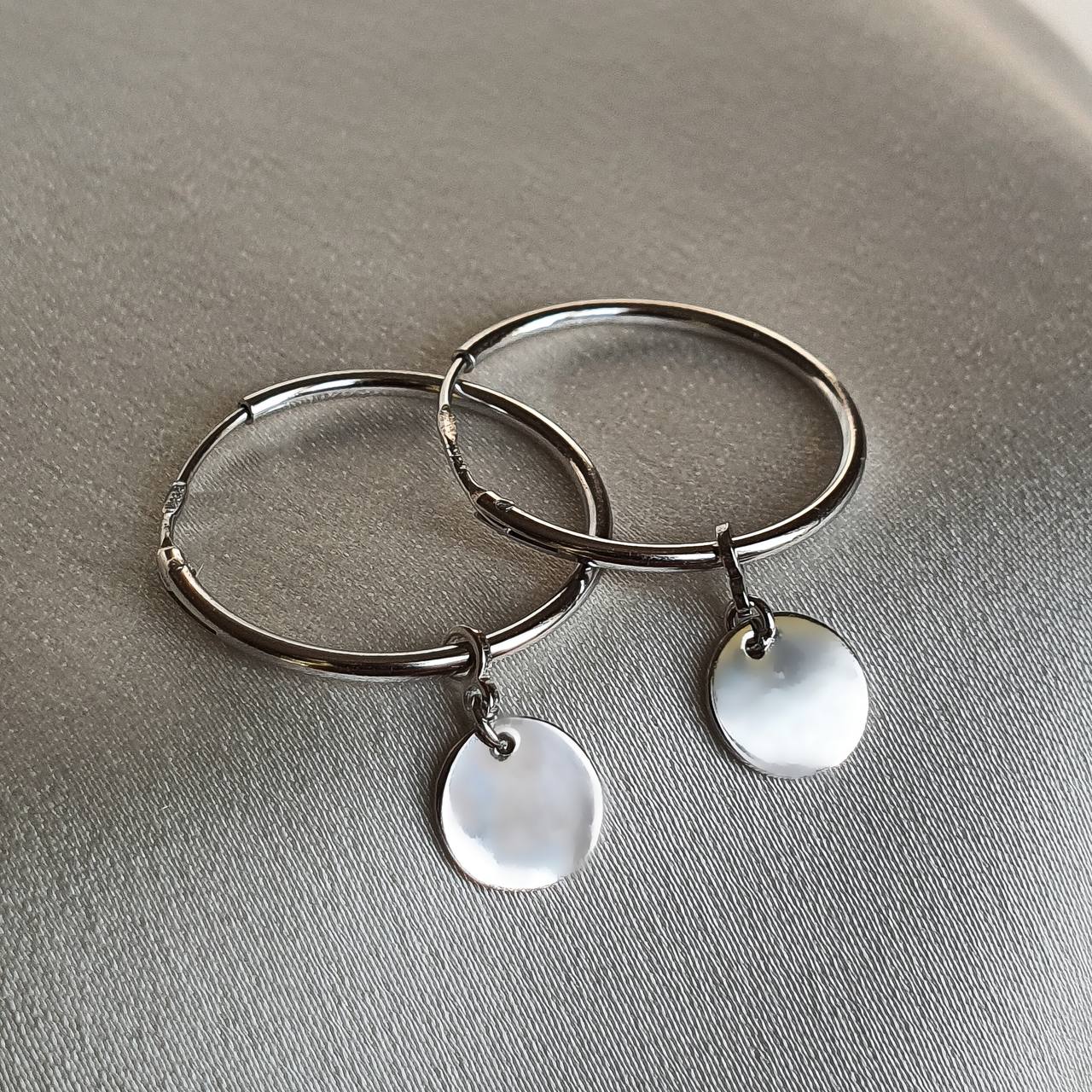 Сережки — кільця срібні з підвісними монетками 003415
