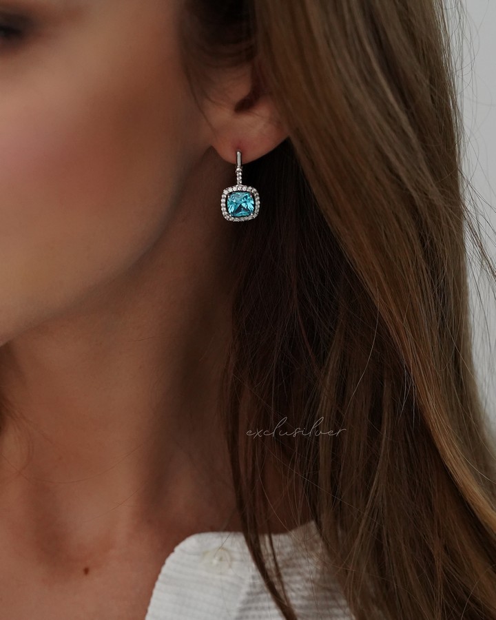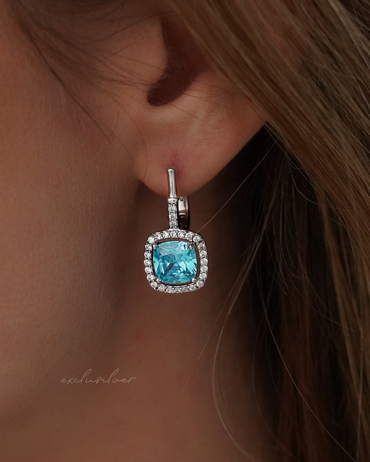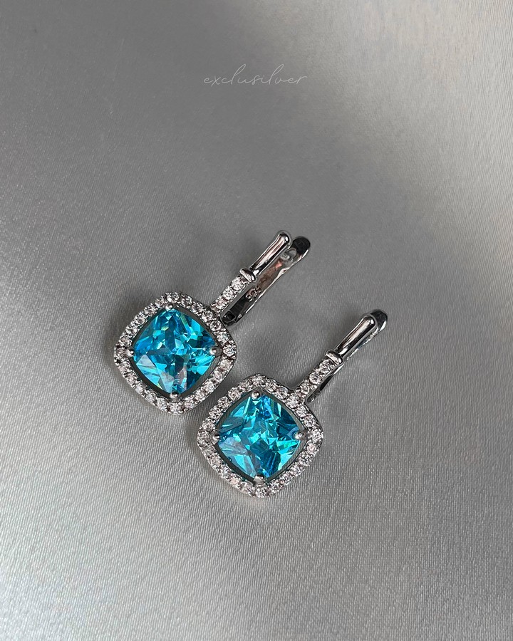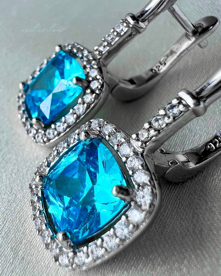 Сережки з срібні с блакитним цирконієм діамантового огранювання 003907