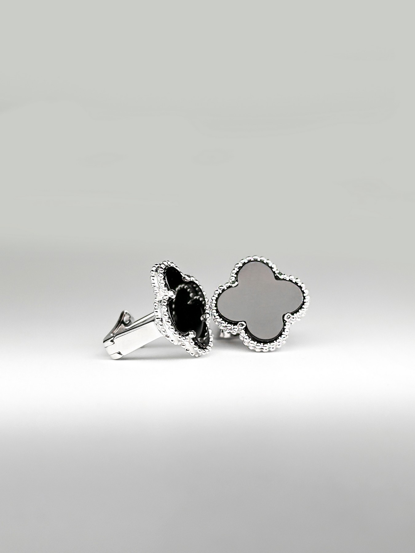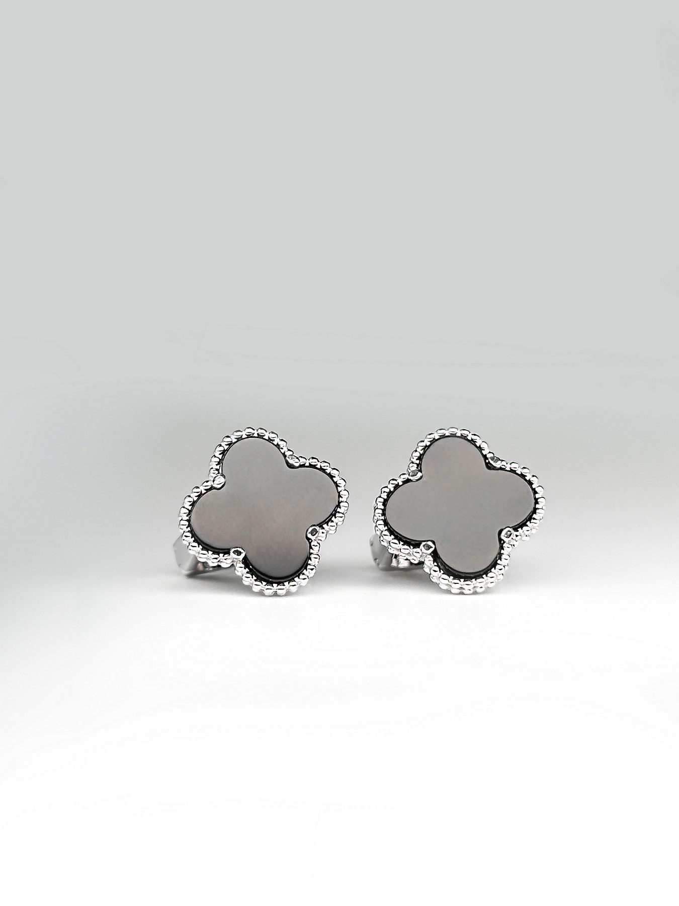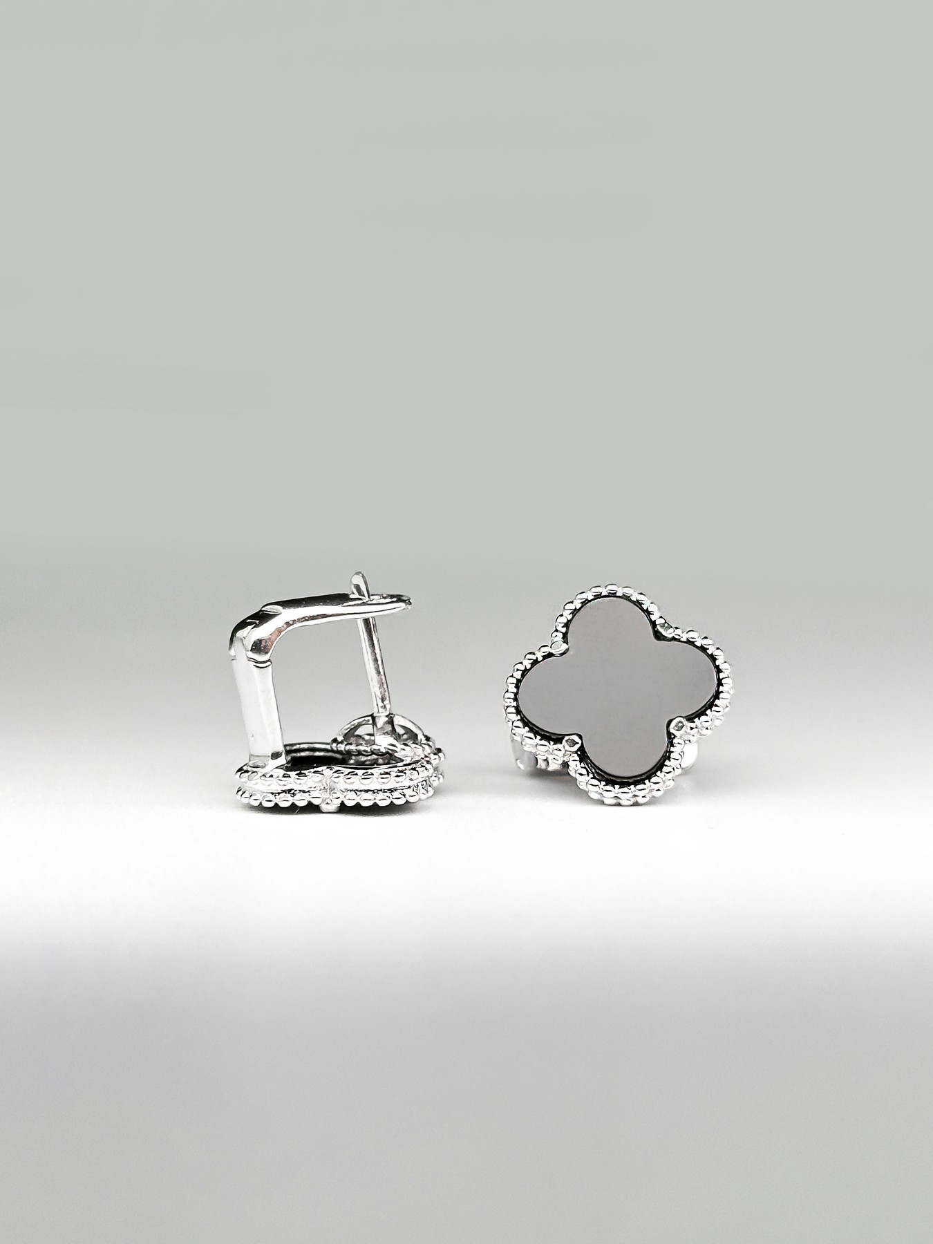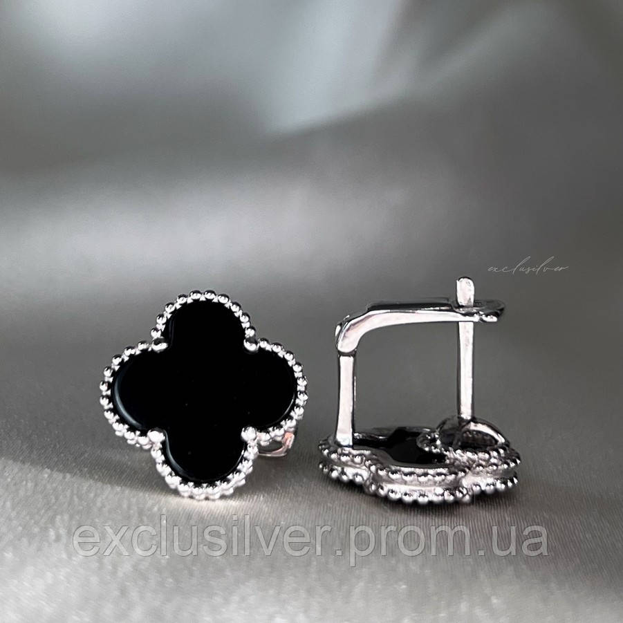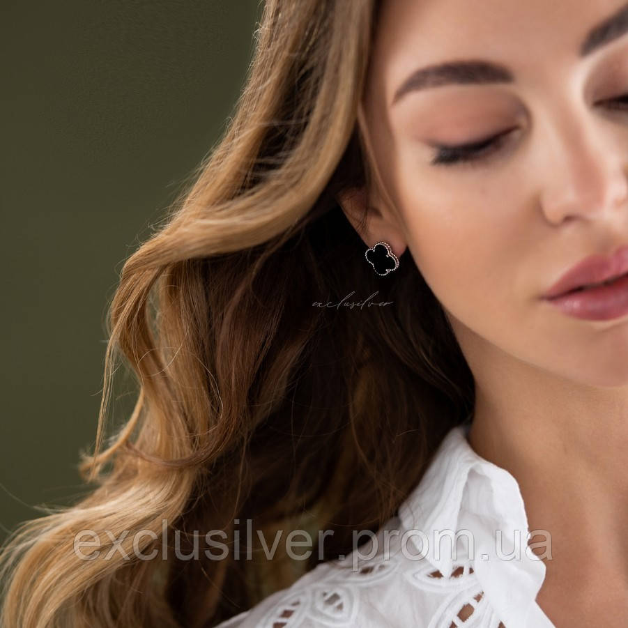 Cрібні сережки Клевер 1,5см з оніксом 002605