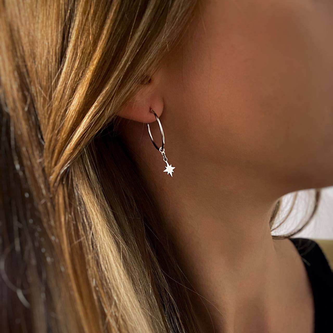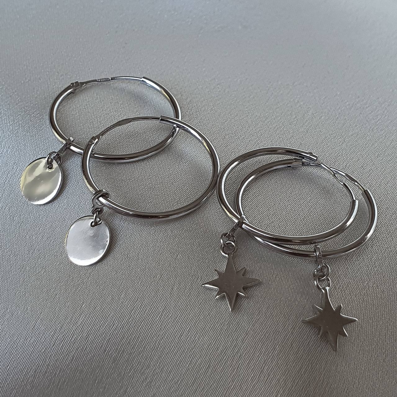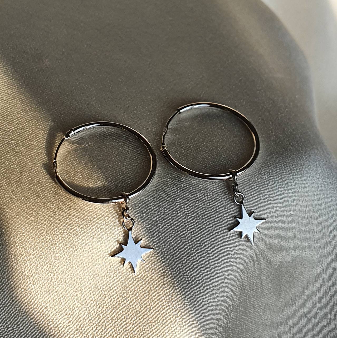 Сережки — кільця срібні з підвісними метеоритами 003413