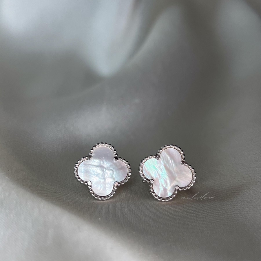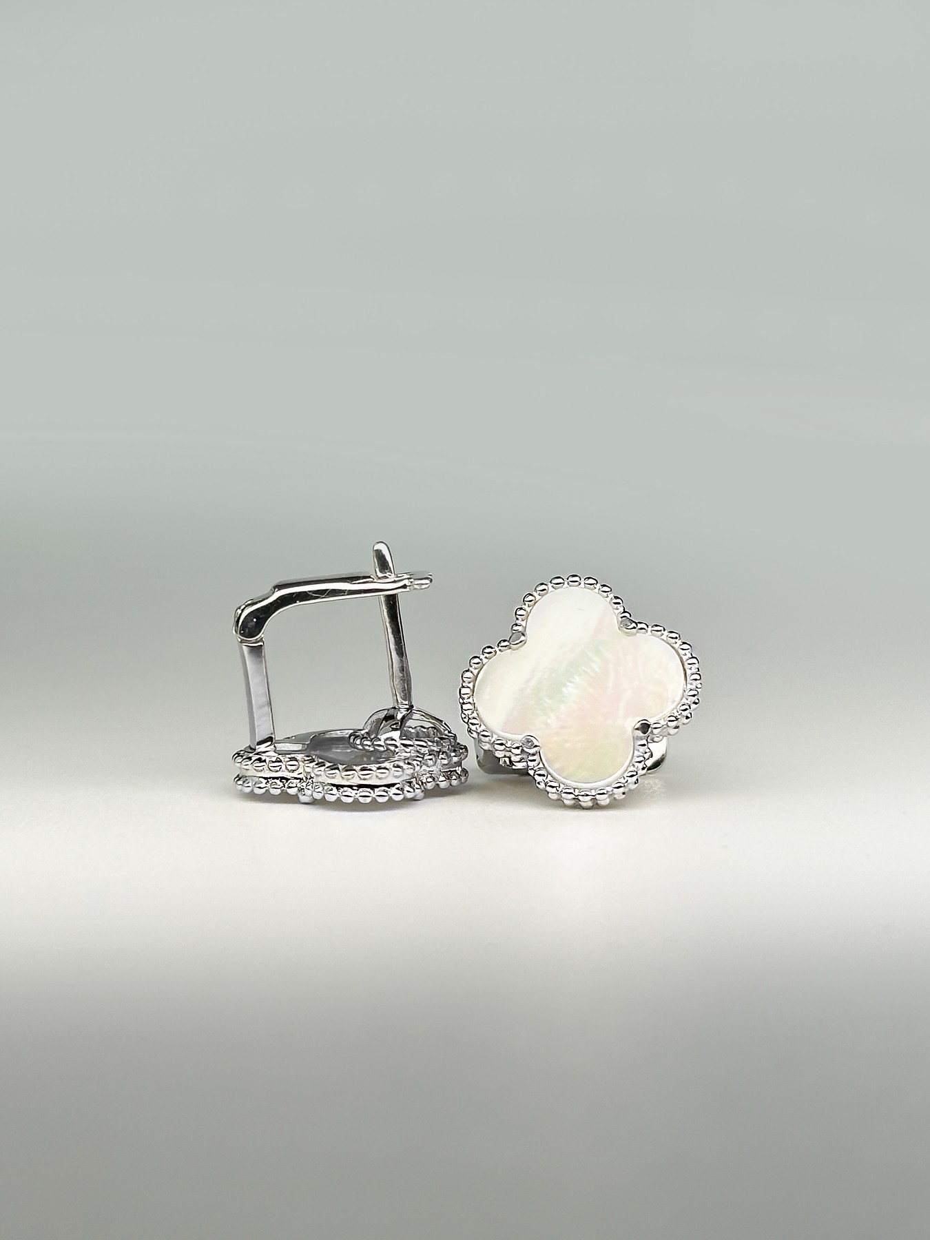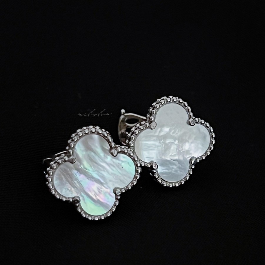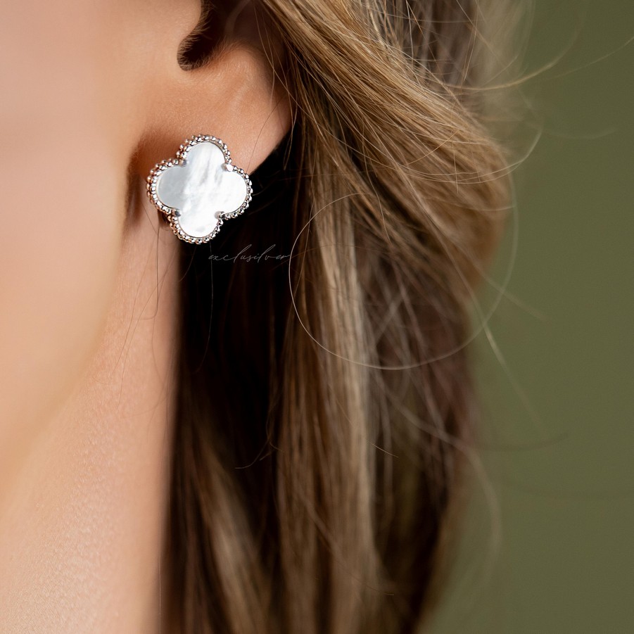 Сережки срібні Клевер 1,5 см з перламутром 002682