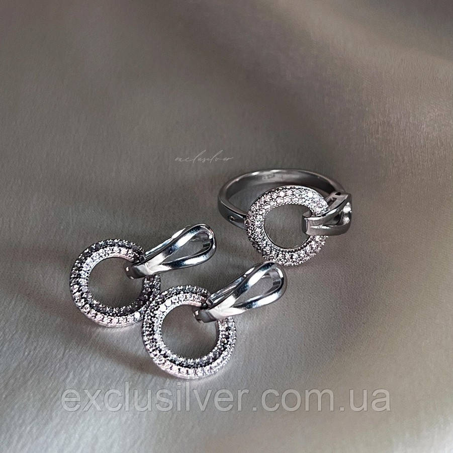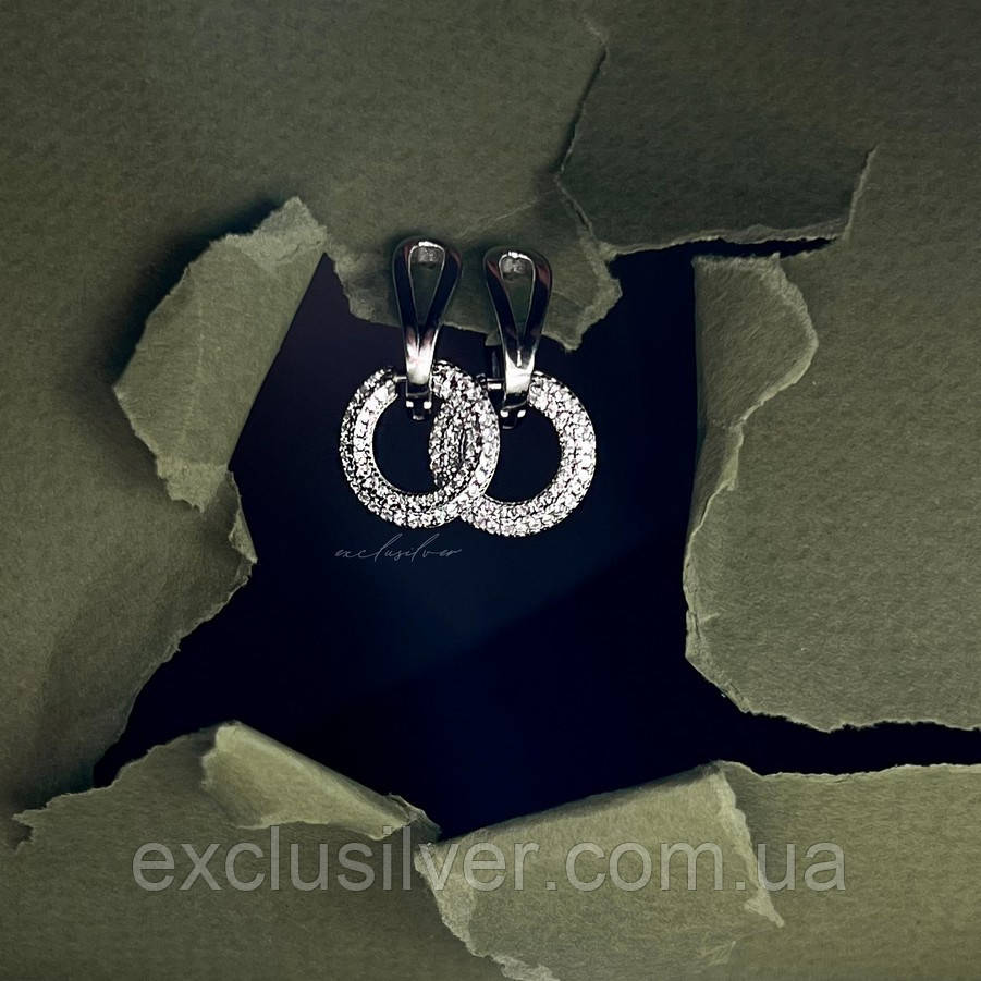 Сережки срібні висячі із цирконієм діамантового огранювання 006347