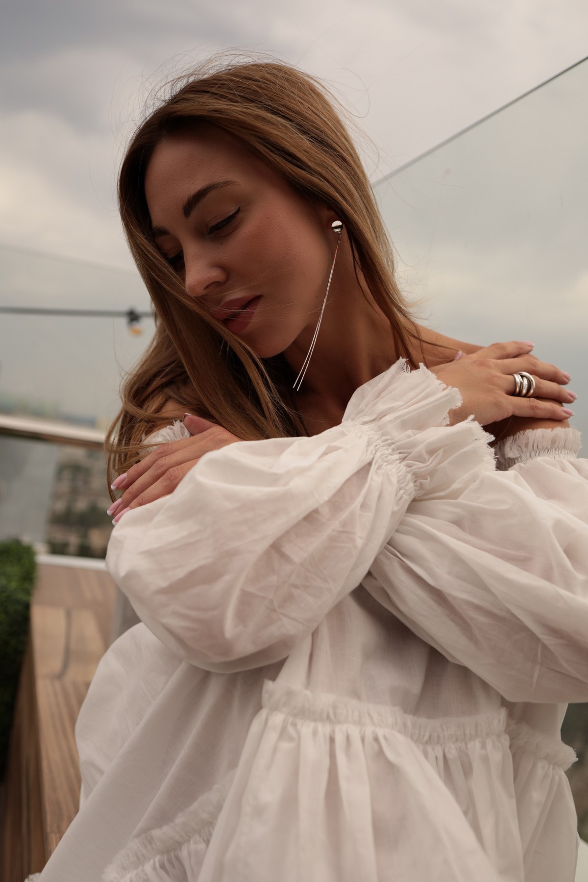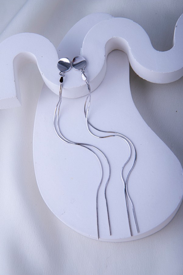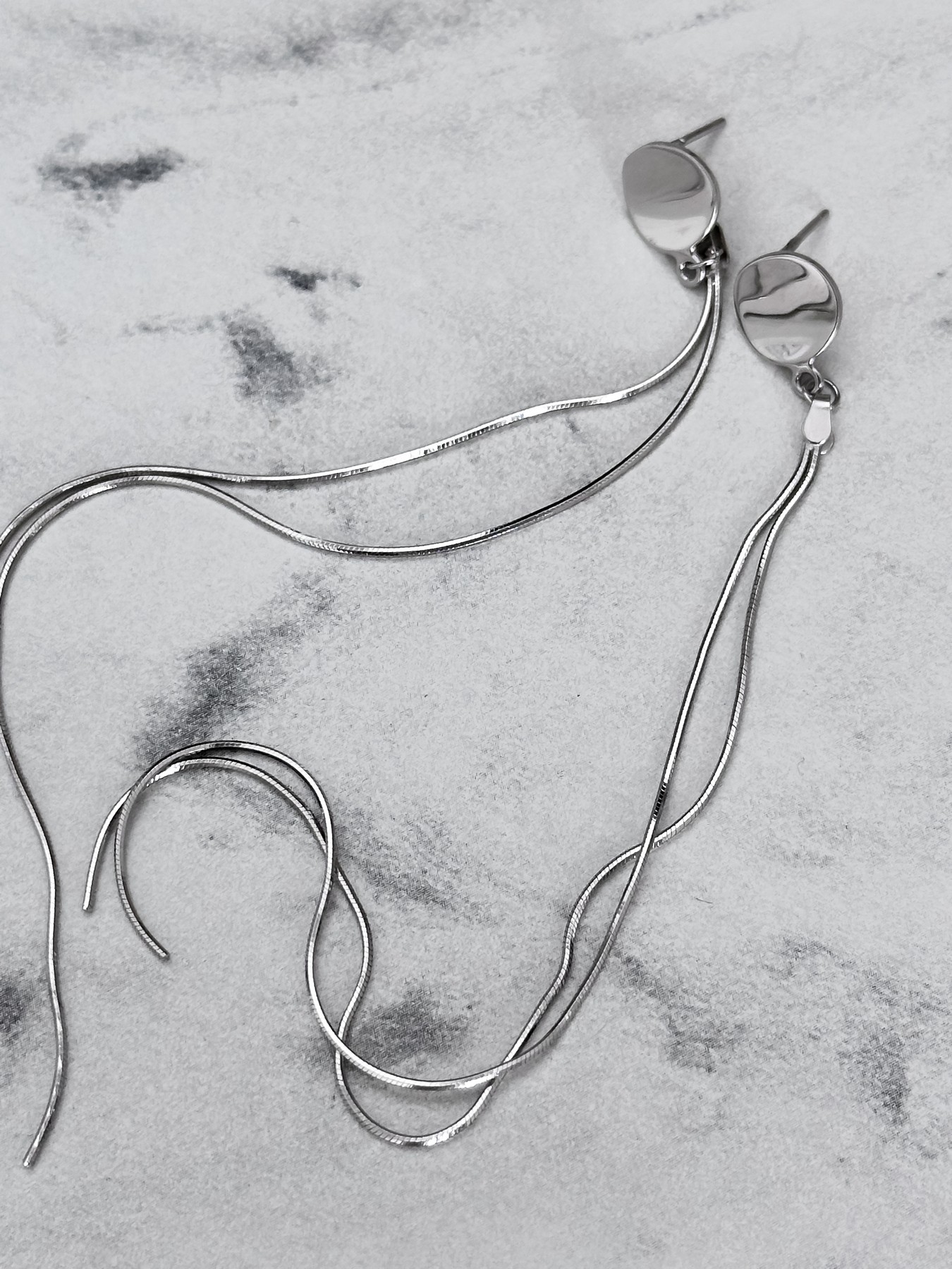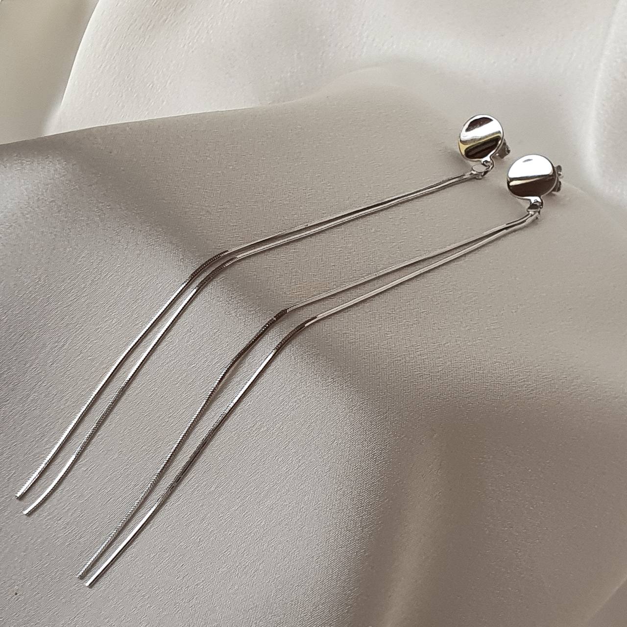 Сережки срібні з довгими ланцюжками на сяючій монетці