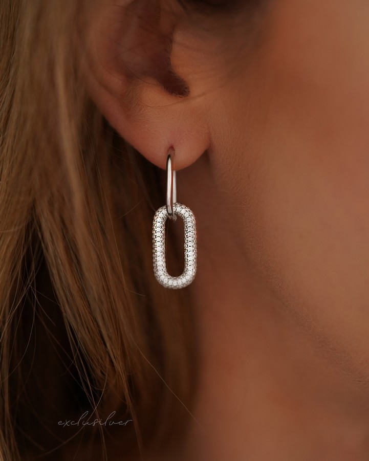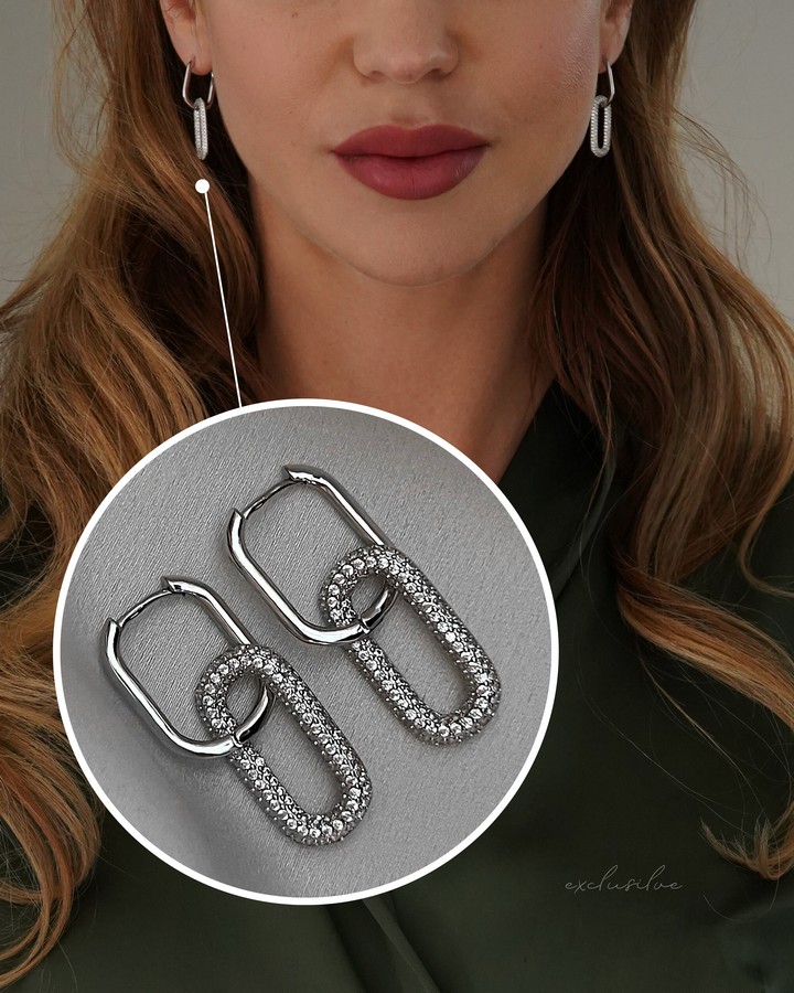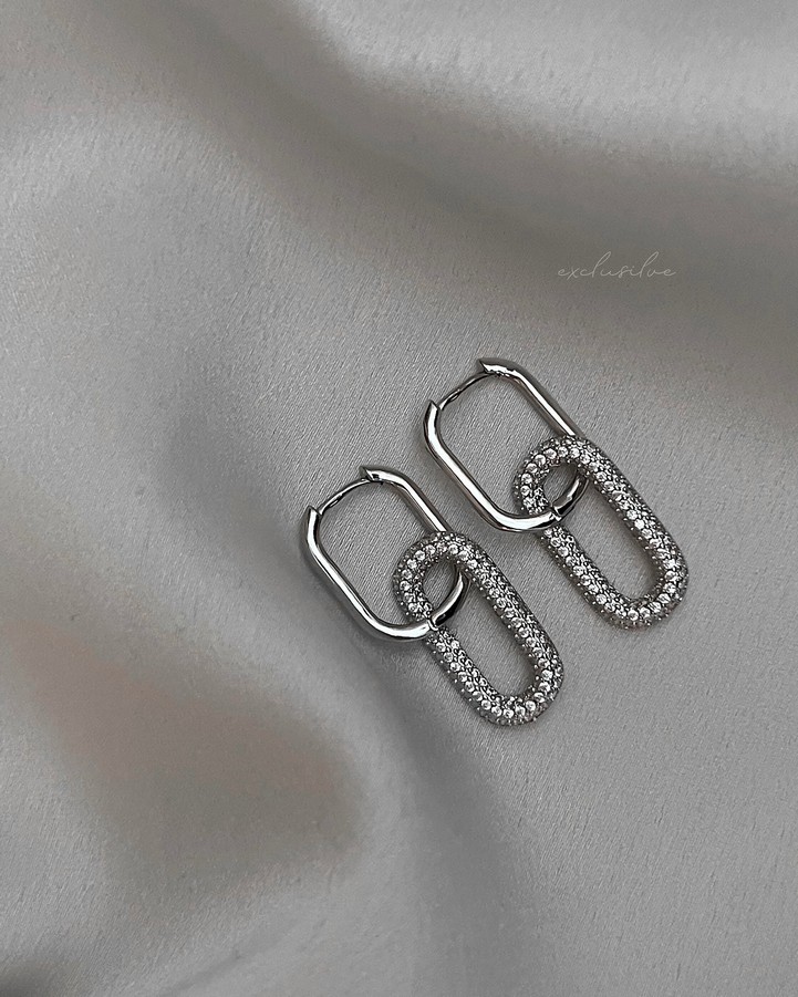 Сережки срібні з прямокутною підвіскою з цирконієм діамантового огранювання
