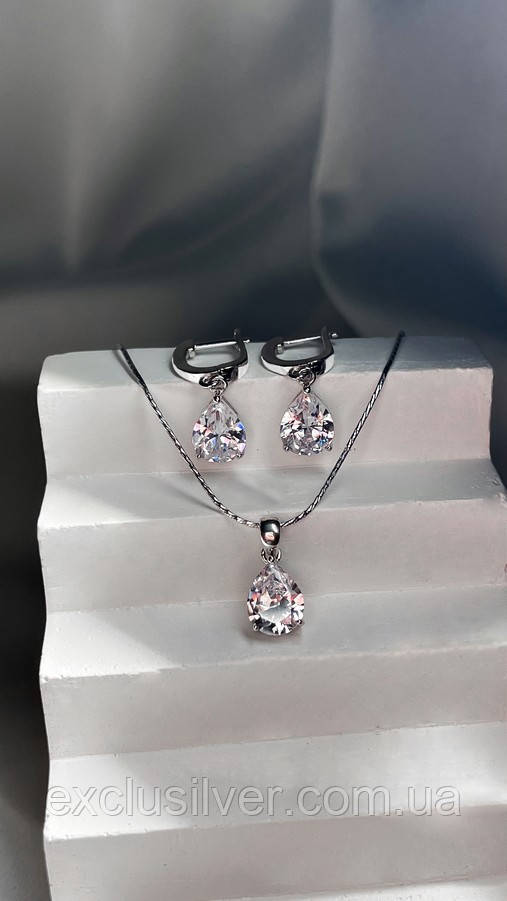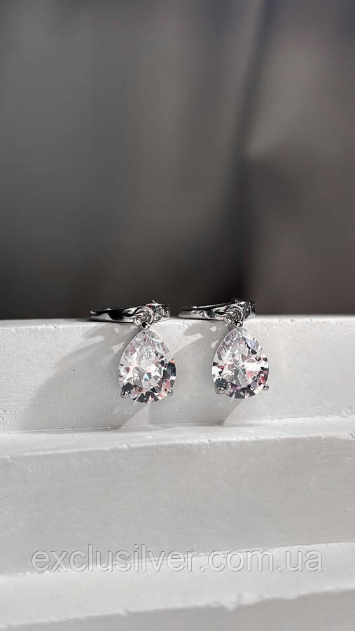 Сережки срібні висячі Капля із цирконієм діамантового огранювання